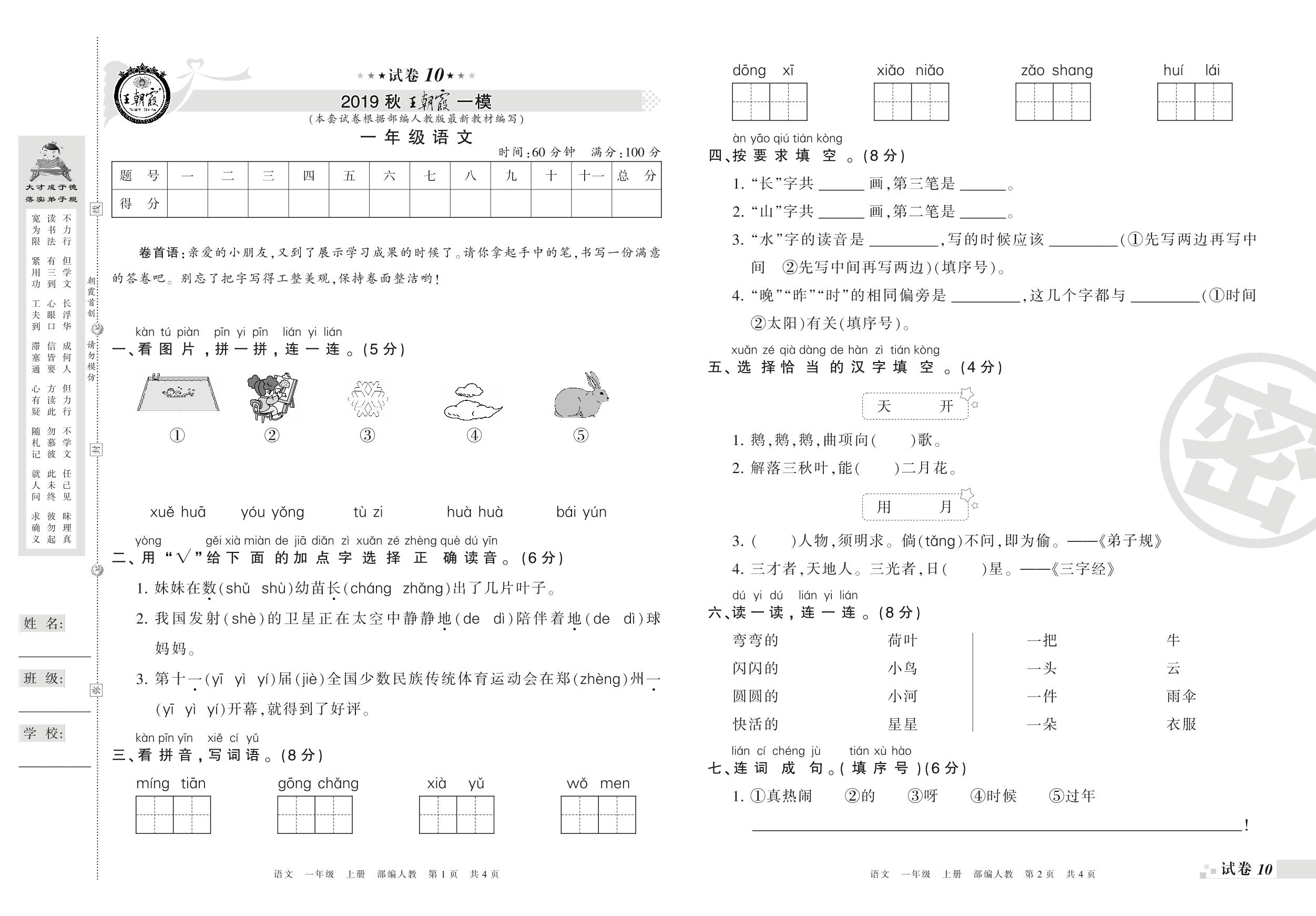 王朝霞期末模拟卷一年级上册语文(人教版)_R210731180844【10】