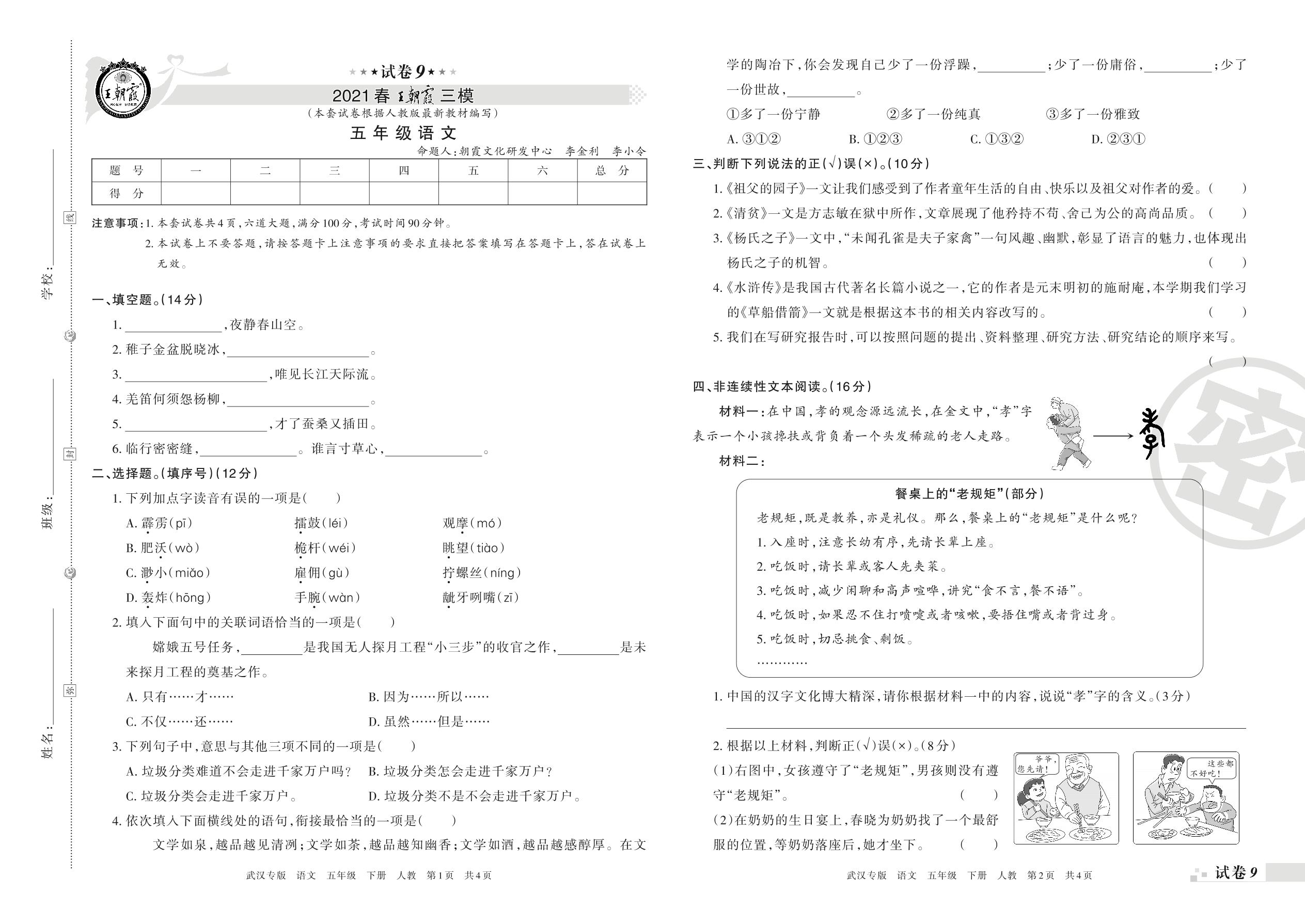王朝霞期末模拟卷五年级下册语文(人教版)_R210801183532【9】