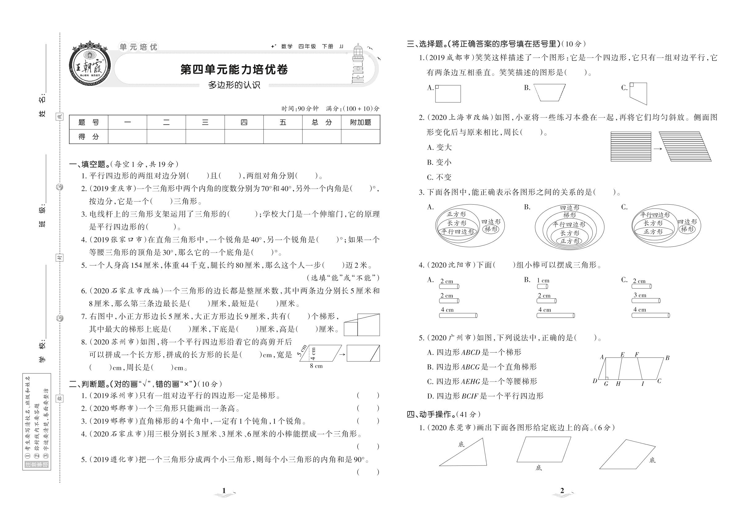 2021下册四年级数学冀教版 第四单元 能力培优卷