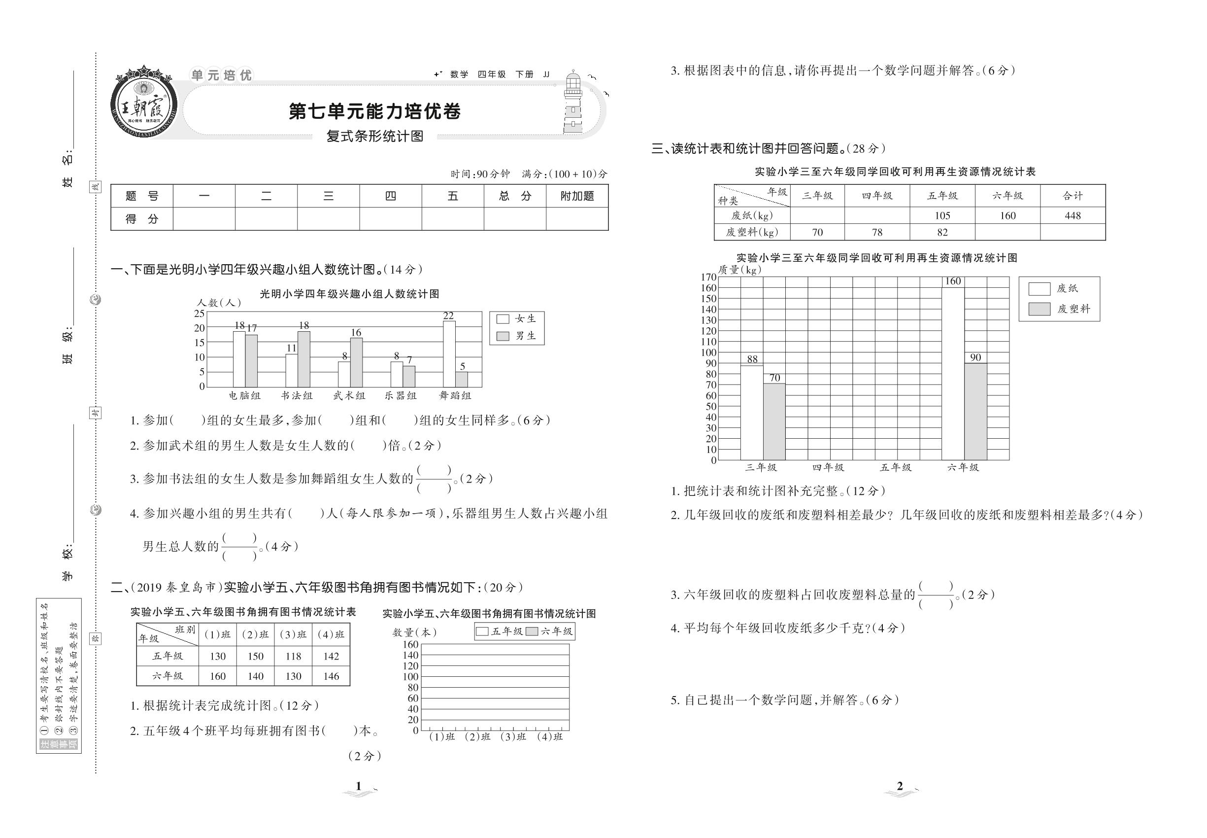 2021下册四年级数学冀教版 第七单元 能力培优卷