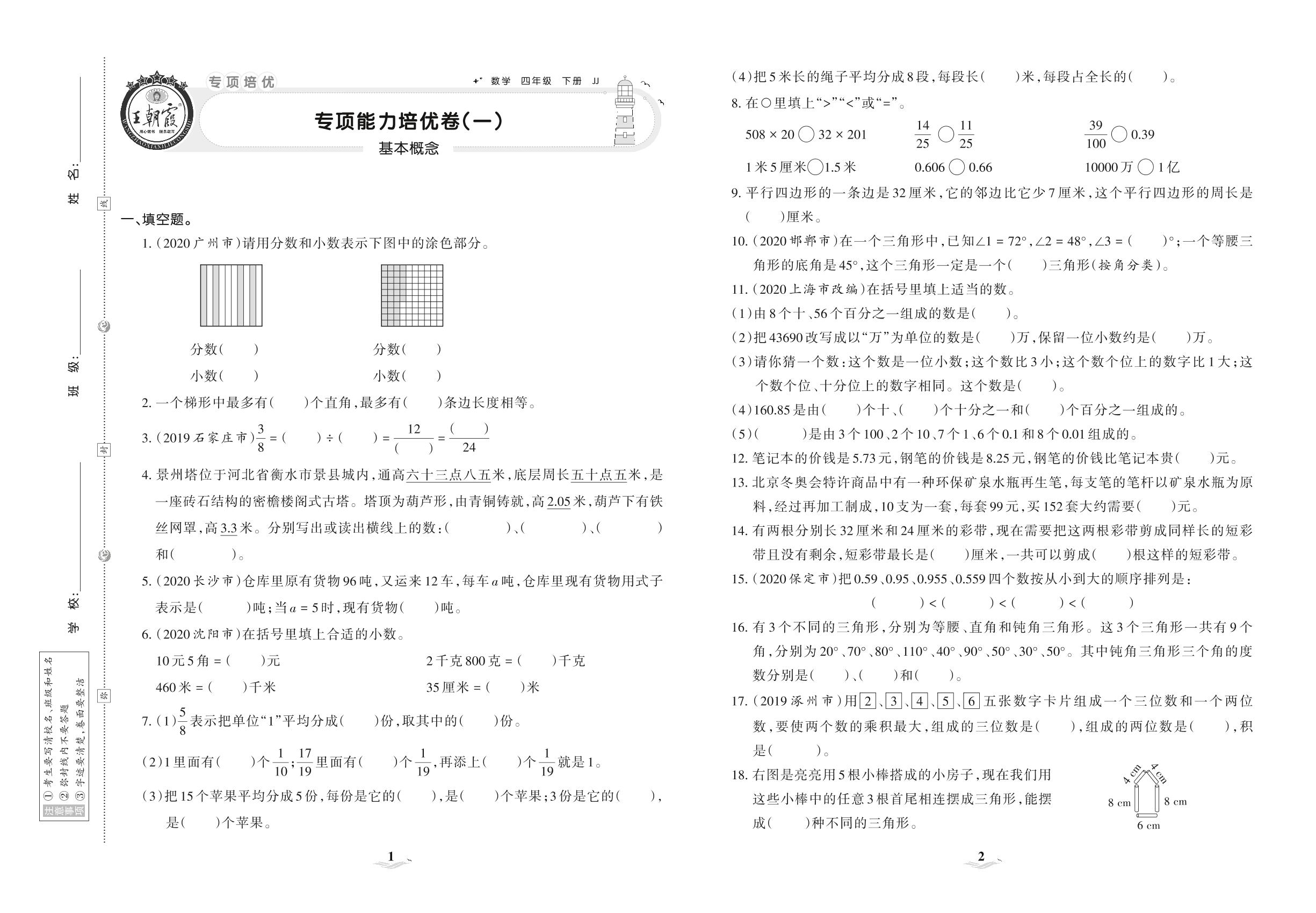 2021下册四年级数学冀教版 专项能力培优卷(一) 基本概念