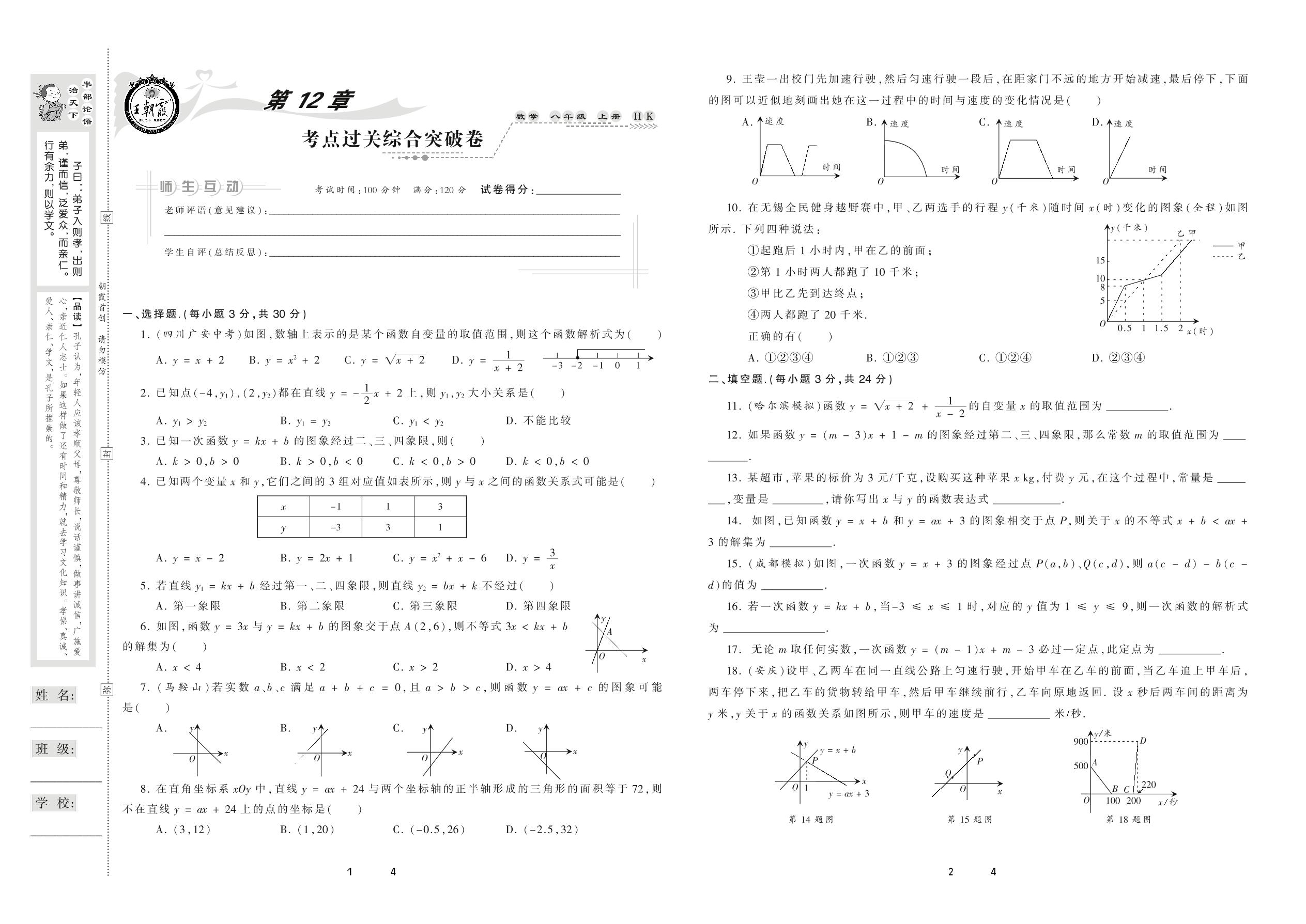2020上册八年级数学沪科版 第12章 考点过关综合突破卷