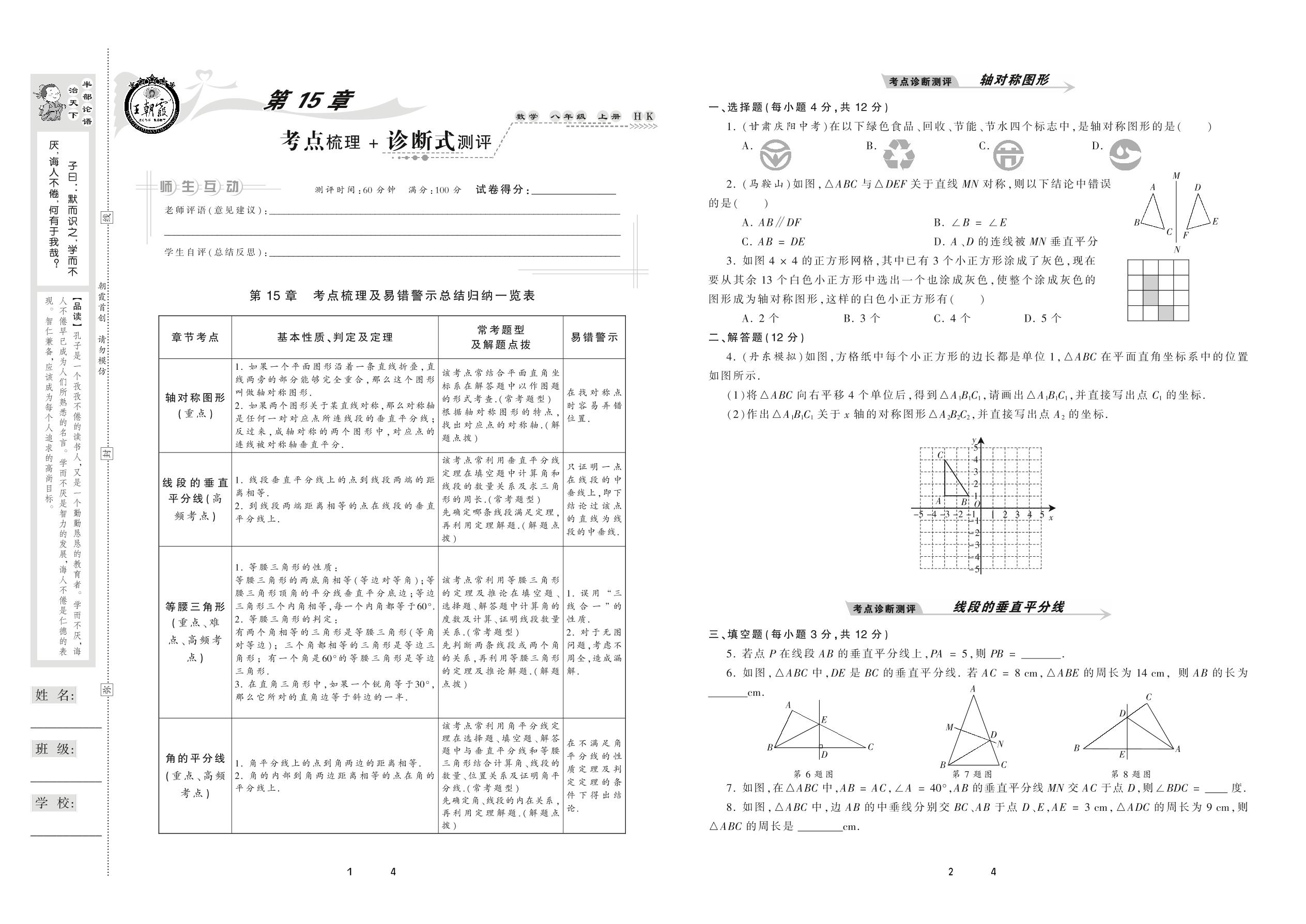 2020上册八年级数学沪科版 第15章 考点梳理+诊断式测评
