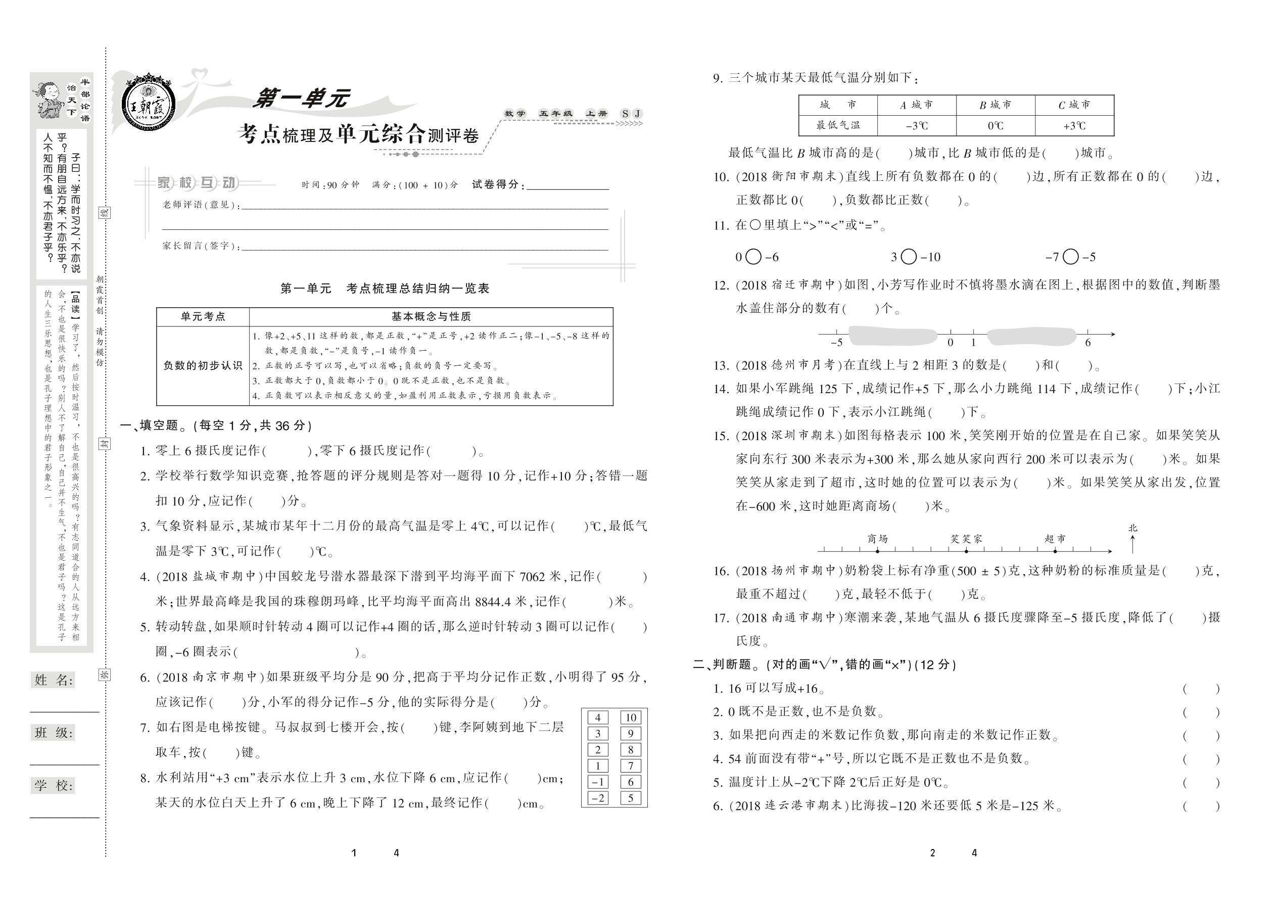 2020上册五年级数学苏教版 第一单元 考点梳理及单元综合测评卷