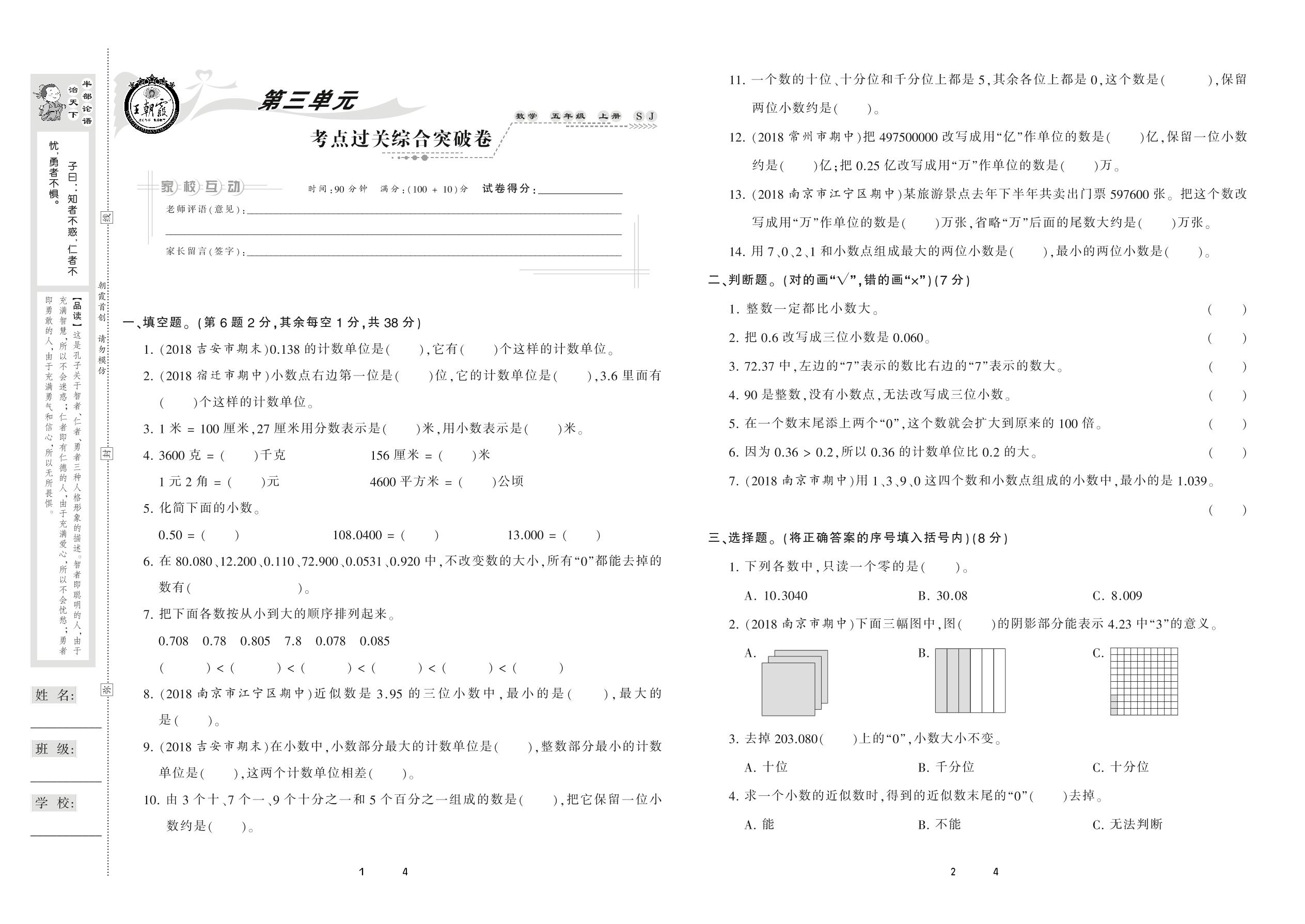 2020上册五年级数学苏教版 第三单元 考点过关综合突破卷