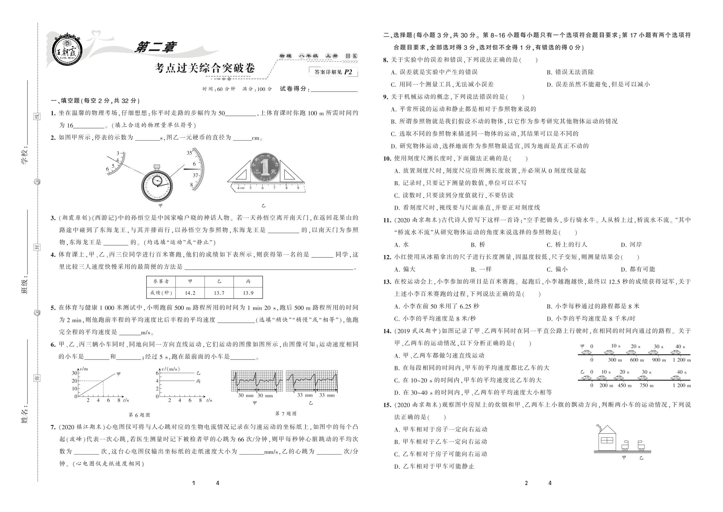 2020-2021学年八年级物理沪科版 第二章 考点过关综合突破卷