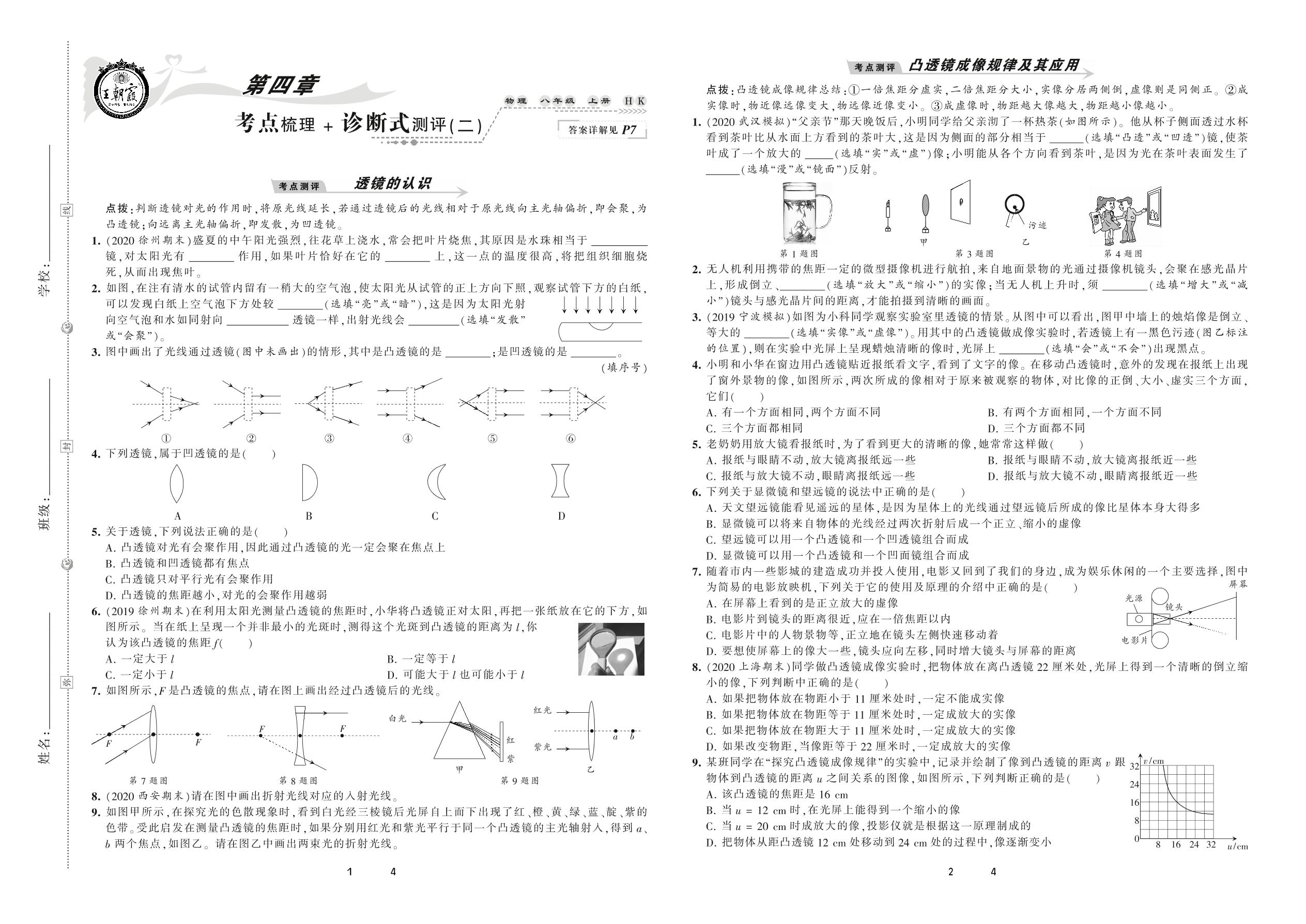 2020-2021学年八年级物理沪科版 第四章 考点梳理 + 诊断式测评(二)