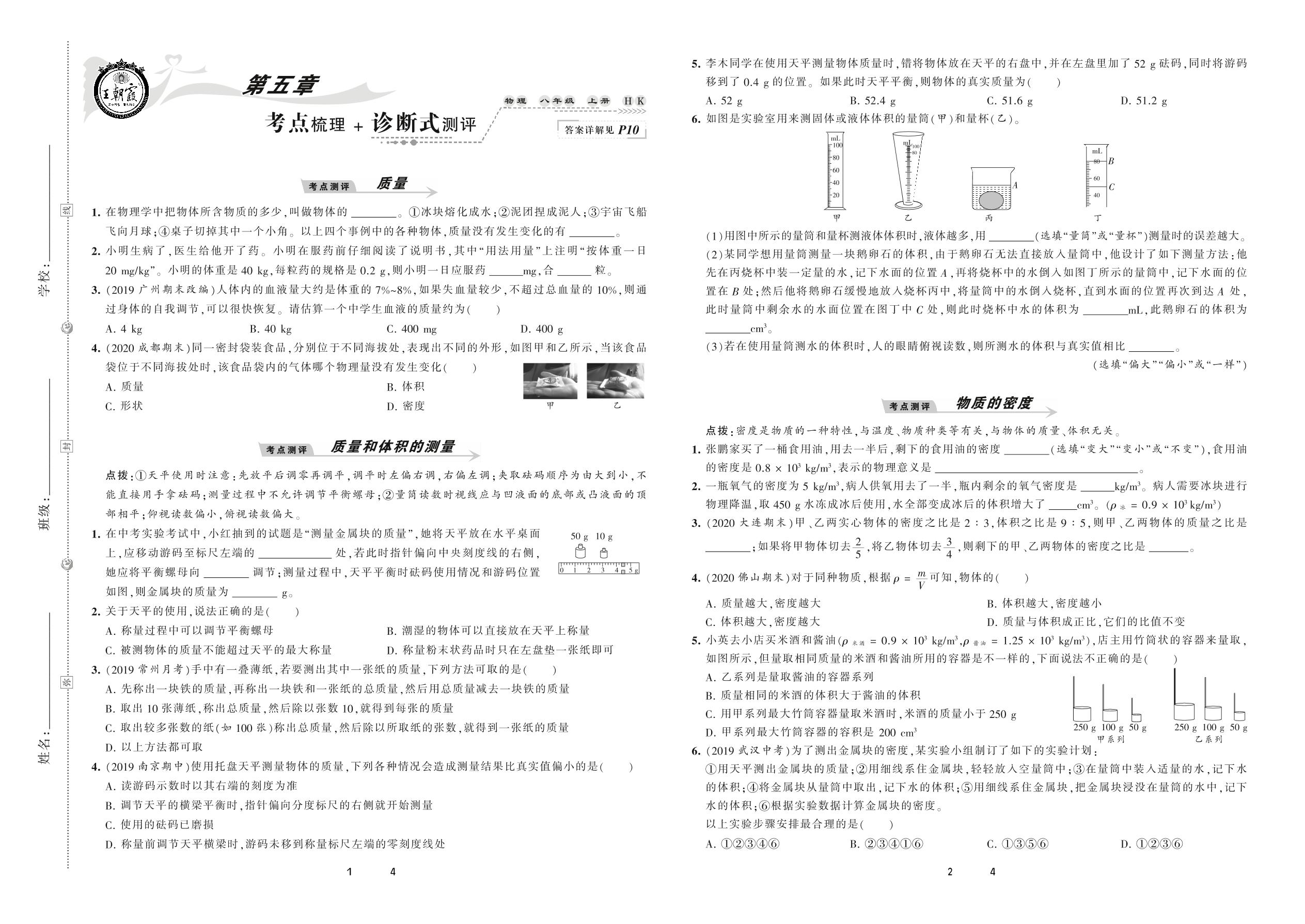 2020-2021学年八年级物理沪科版 第五章 考点梳理 + 诊断式测评