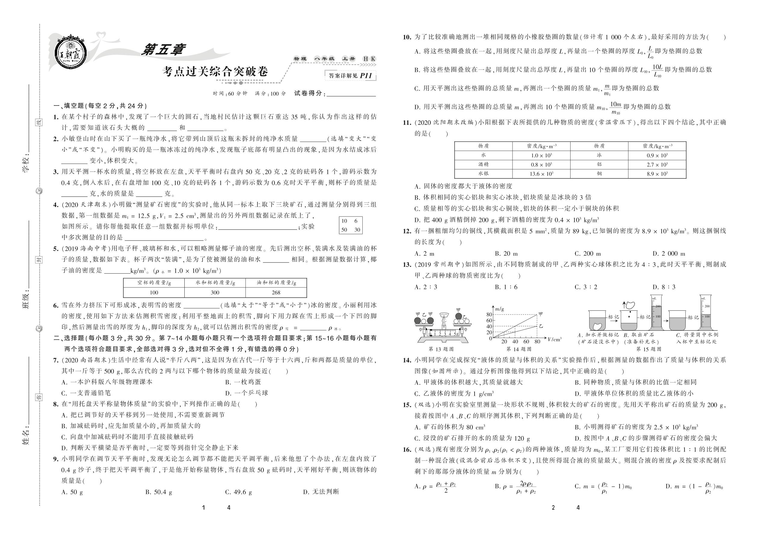 2020-2021学年八年级物理沪科版 第五章 考点过关综合突破卷