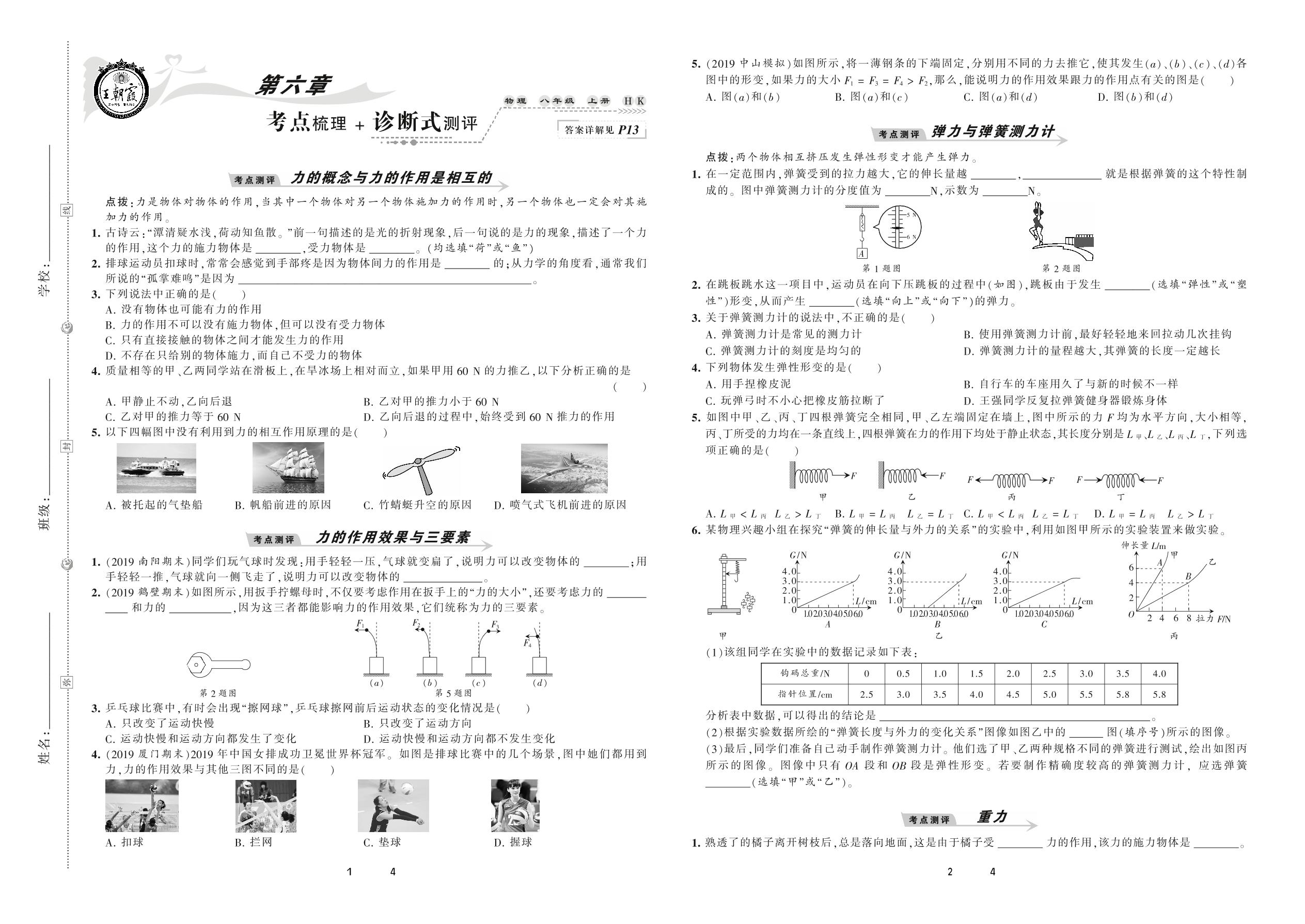 2020-2021学年八年级物理沪科版 第六章 考点梳理 + 诊断式测评