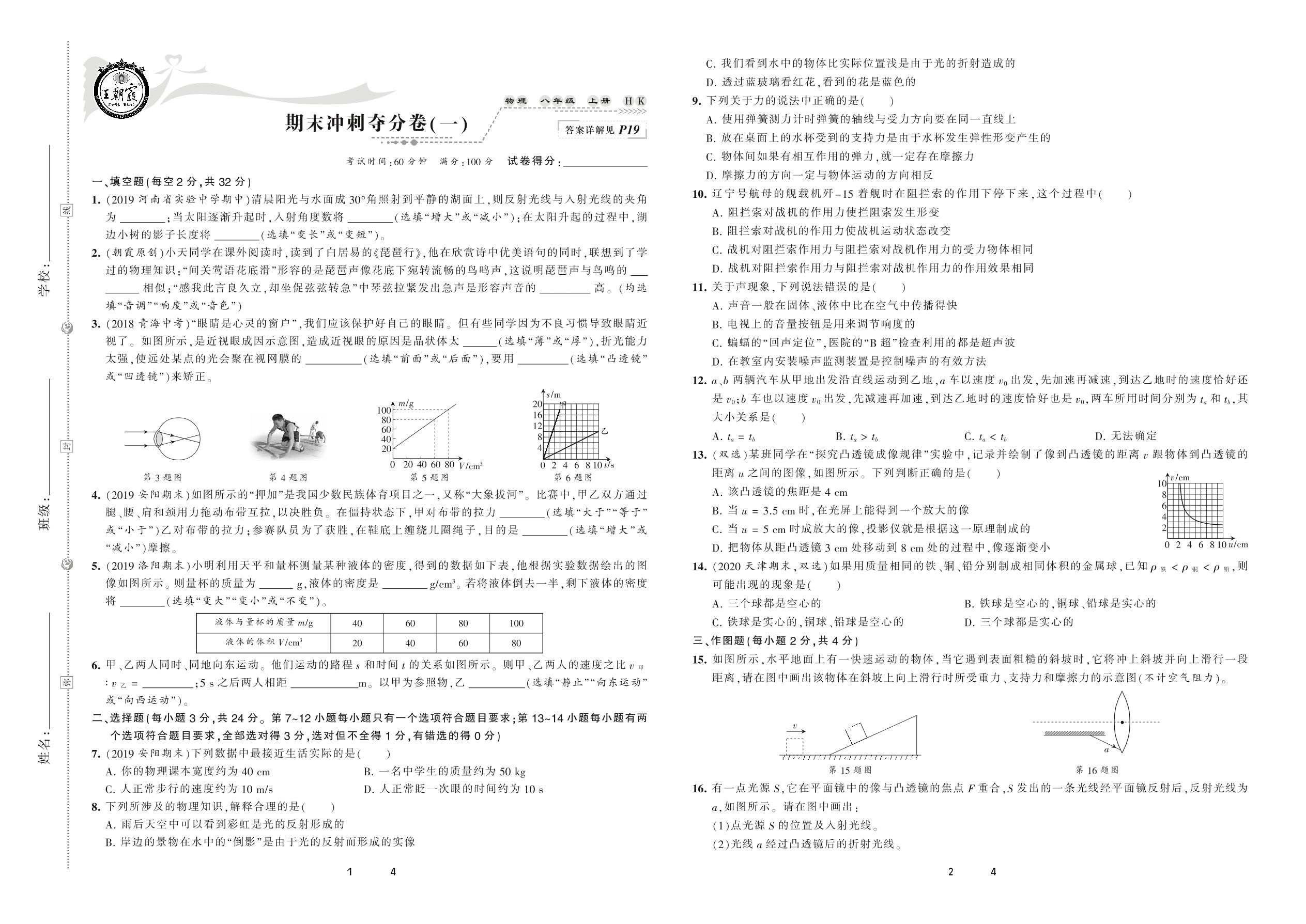 2020上册八年级物理沪科版 期末冲刺夺分卷(一)