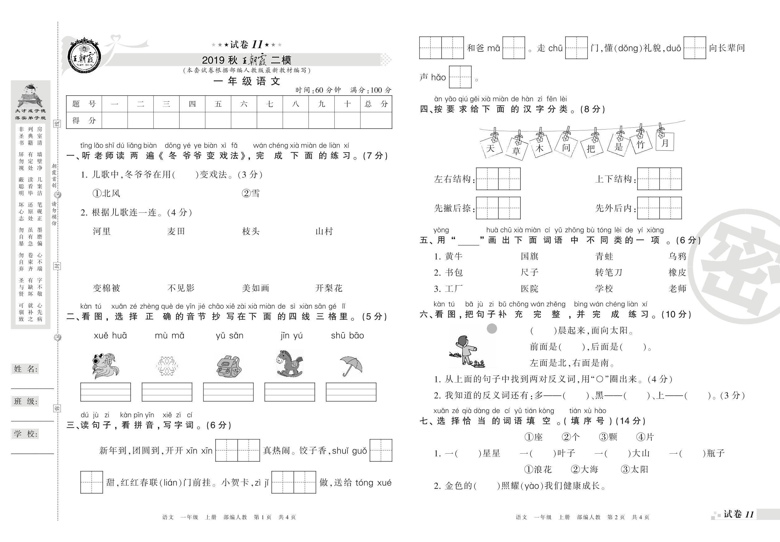 王朝霞期末模拟卷一年级上册语文(人教版)_R210731180847【11】