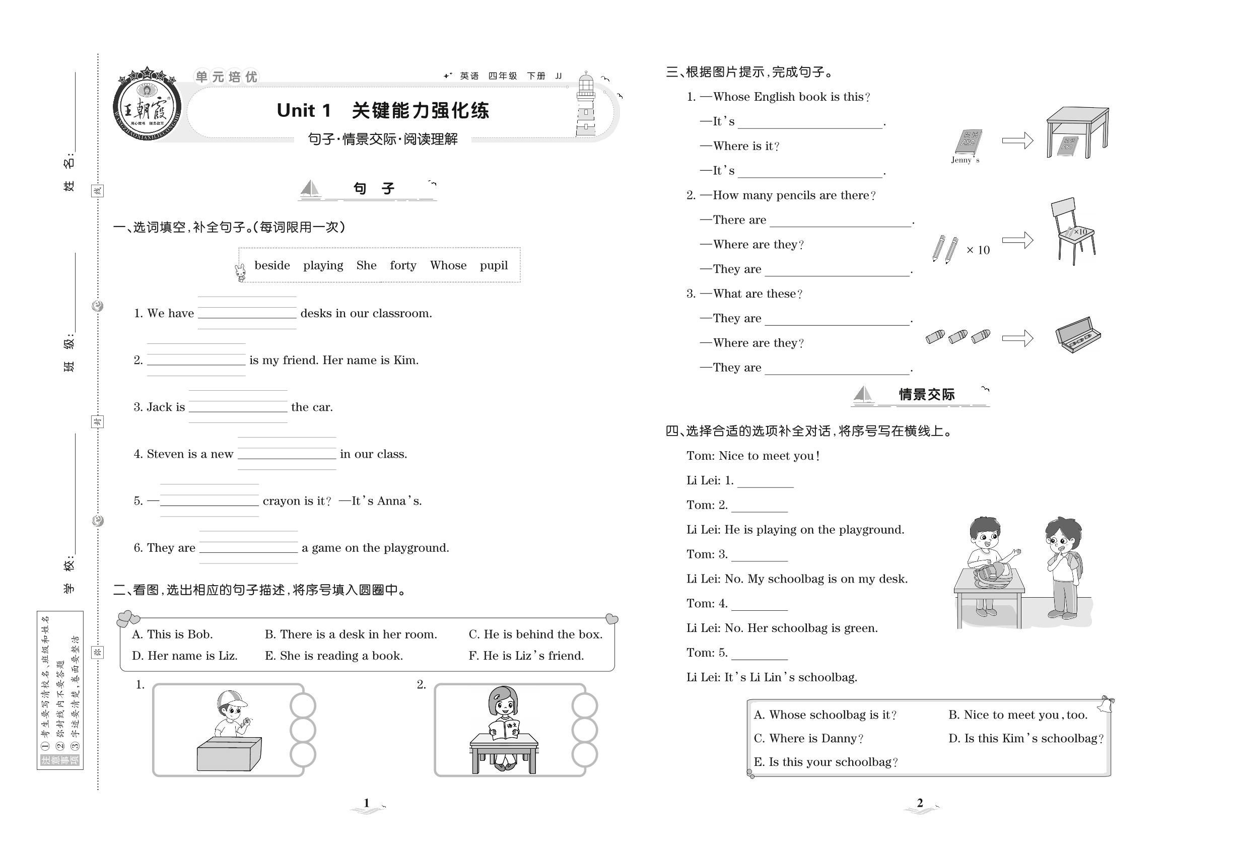 2021下册四年级英语冀教版 Unit 1 关键能力强化练