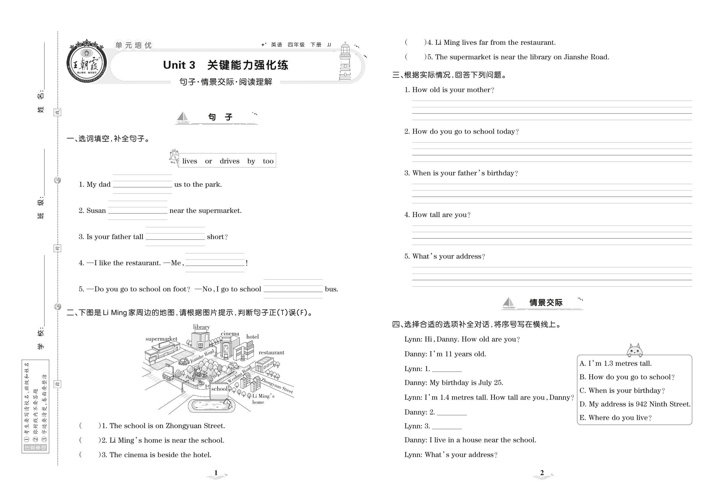 2021下册四年级英语冀教版 Unit 3 关键能力强化练
