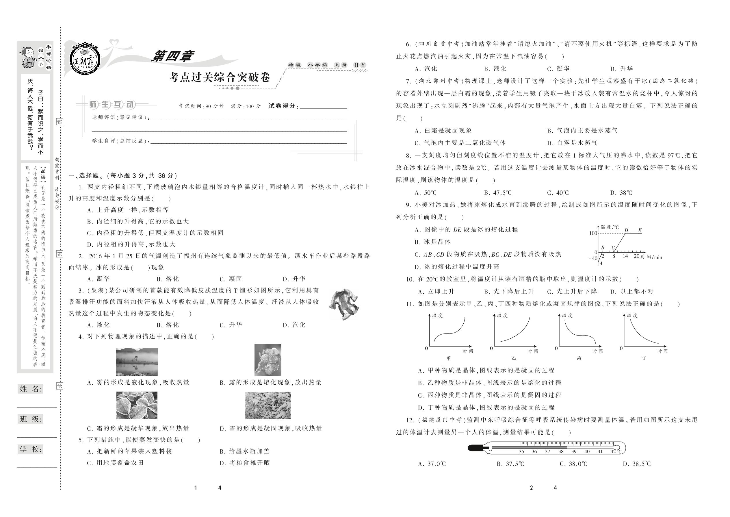 2020上册八年级物理沪粤版 第四章 考点过关综合突破卷