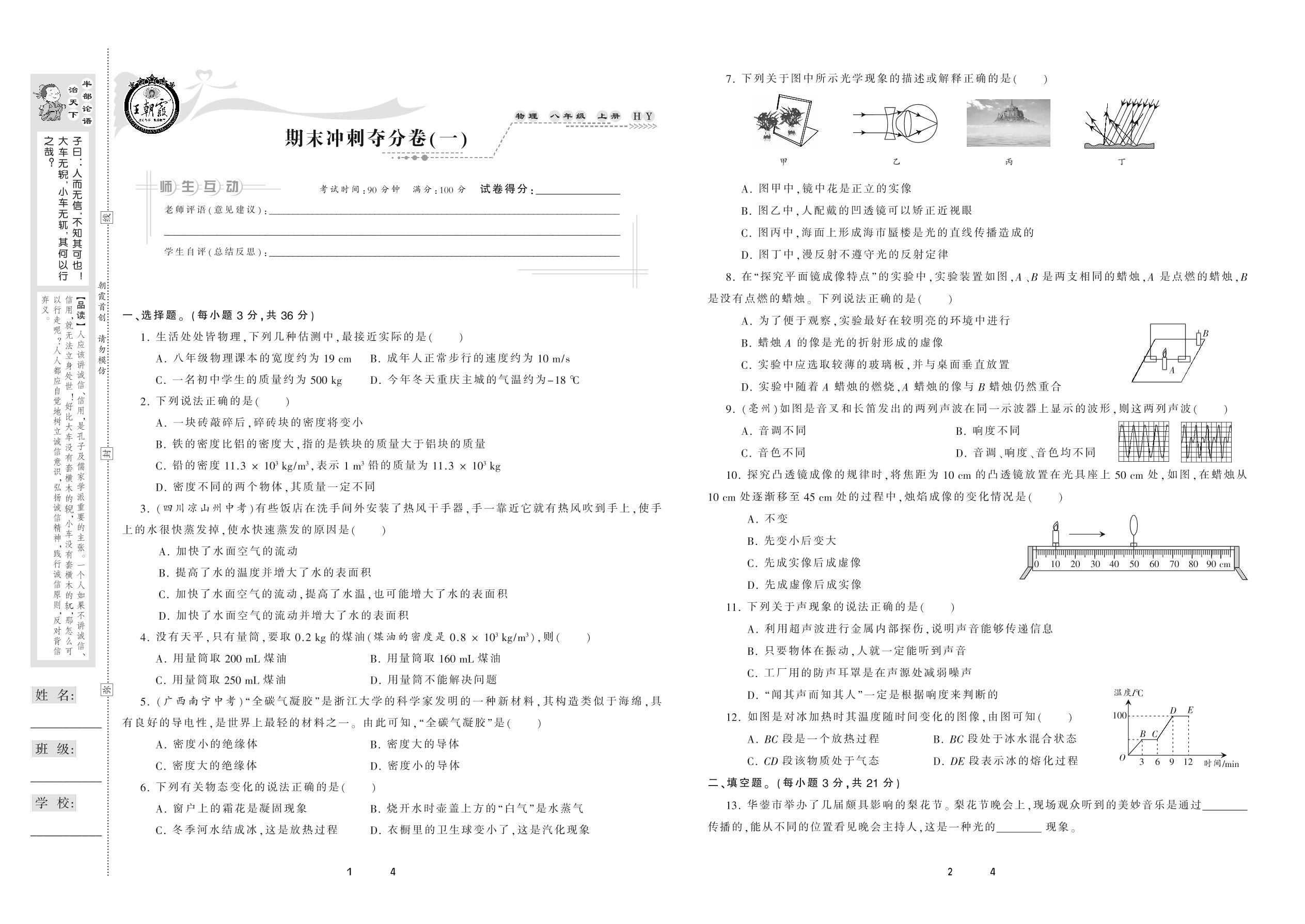 2020上册八年级物理沪粤版 期末冲刺夺分卷(一)