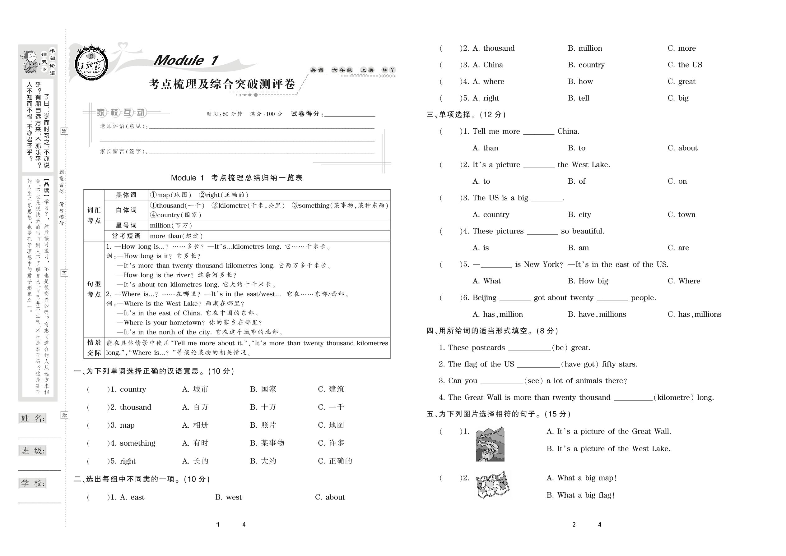 2020上册六年级英语外研版 Module 1 考点梳理及综合突破测评卷