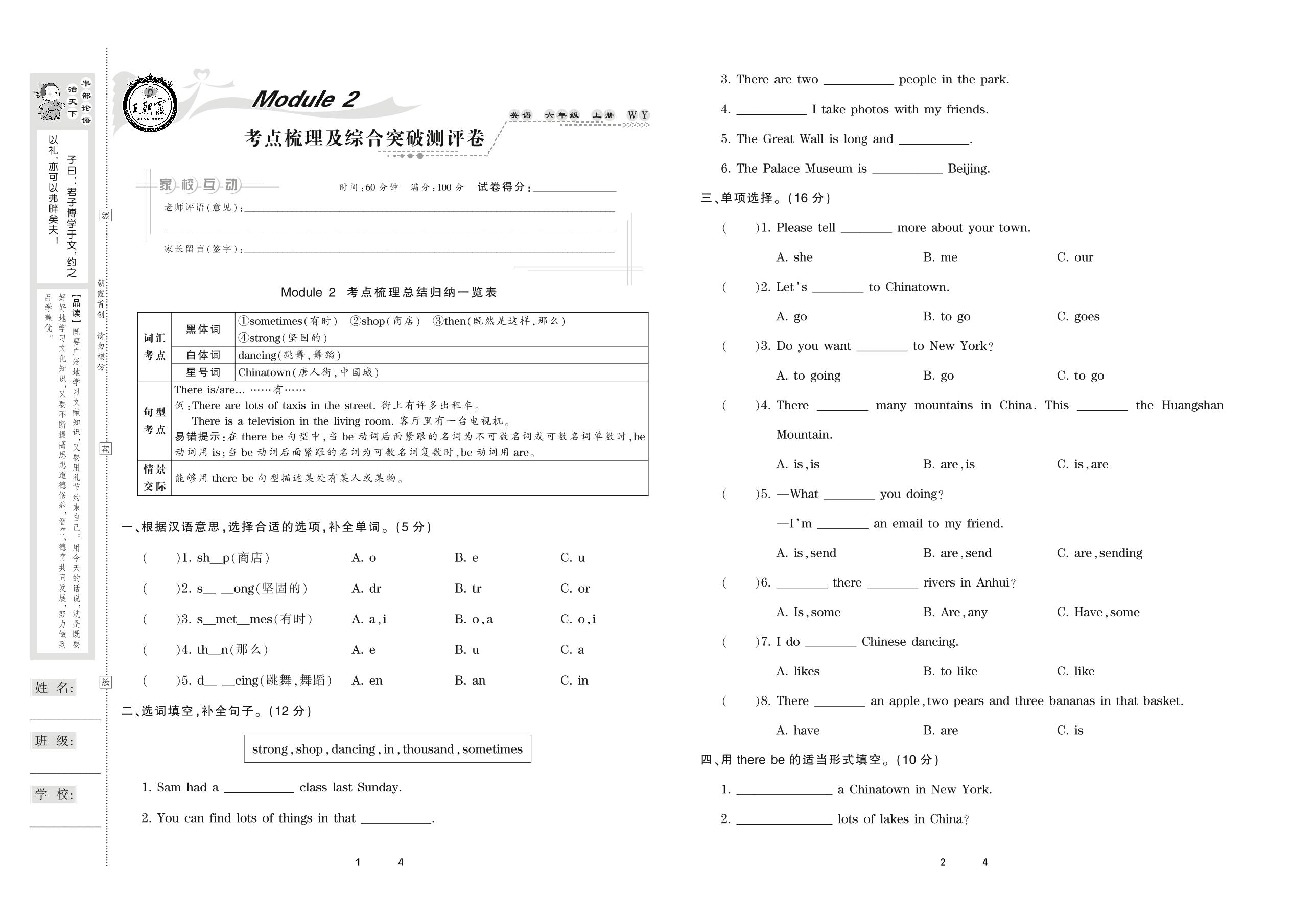 2020上册六年级英语外研版 Module 2 考点梳理及综合突破测评卷