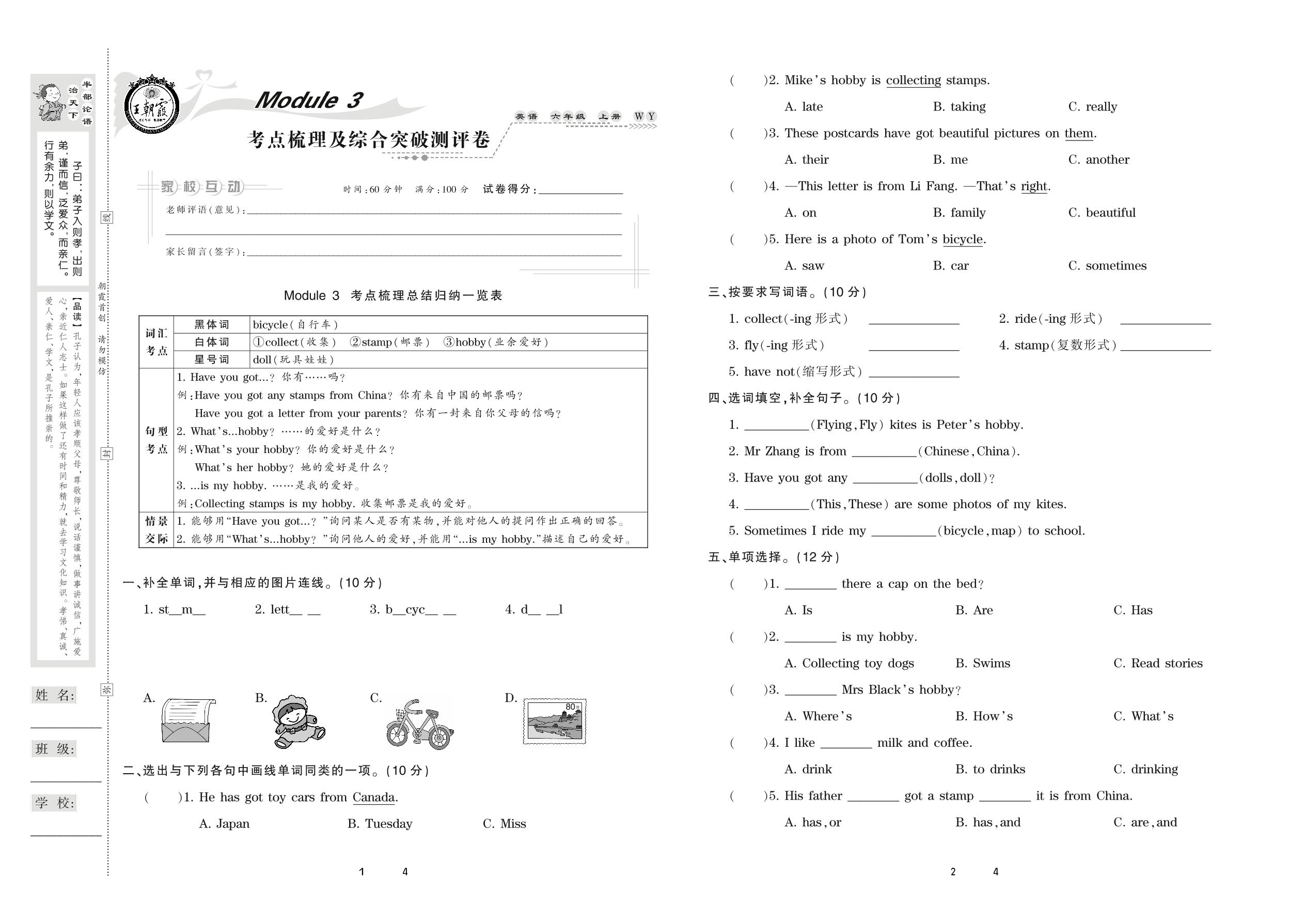 2020上册六年级英语外研版 Module 3 考点梳理及综合突破测评卷