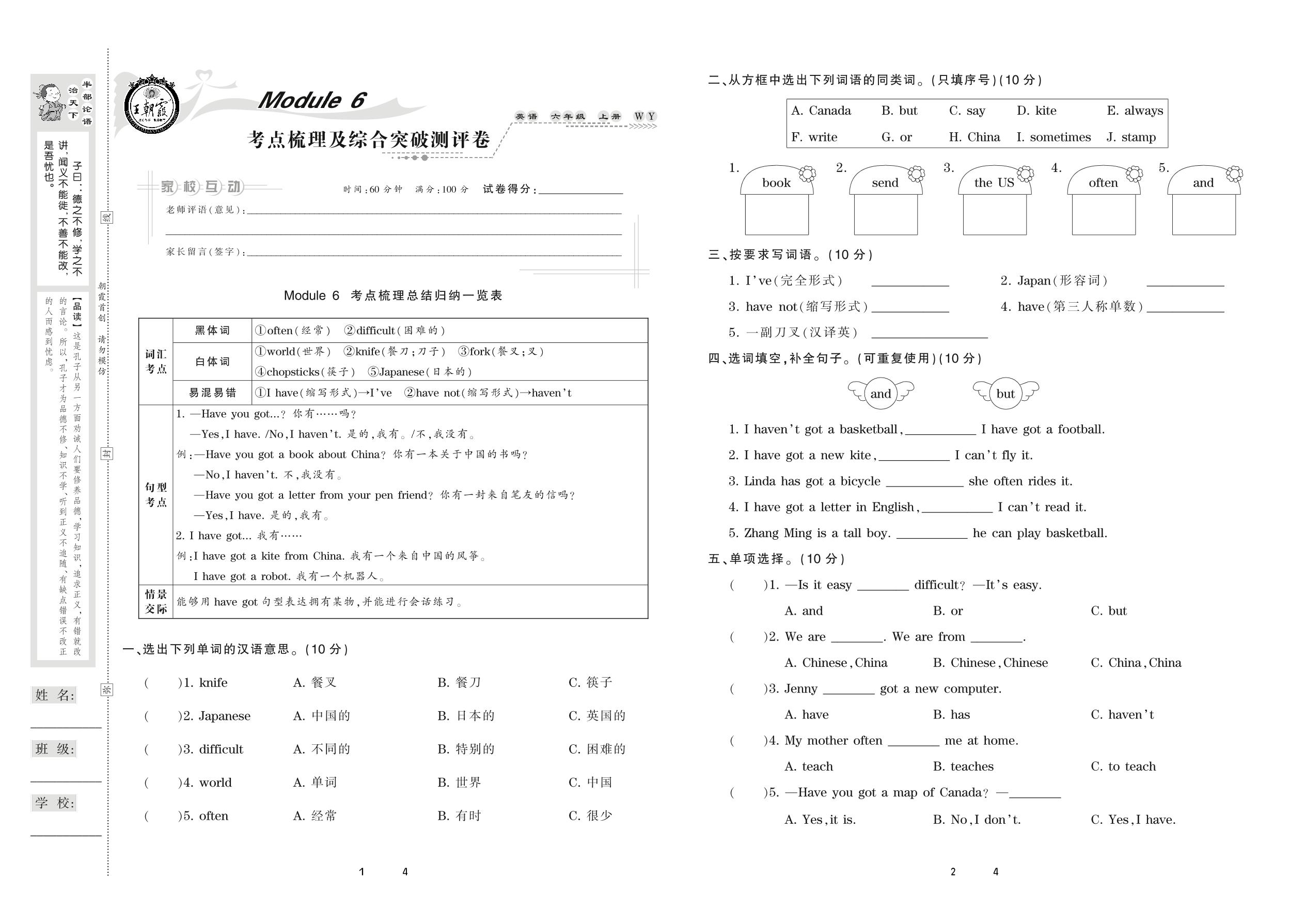 2020上册六年级英语外研版 Module 6 考点梳理及综合突破测评卷