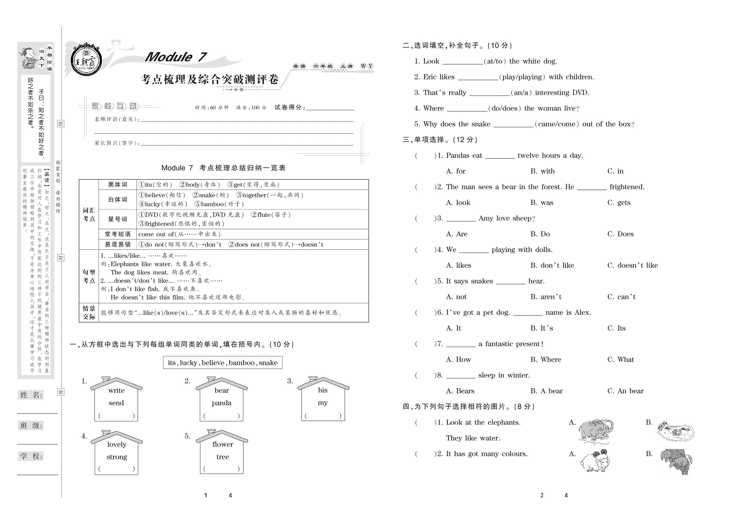2020上册六年级英语外研版 Module 7 考点梳理及综合突破测评卷