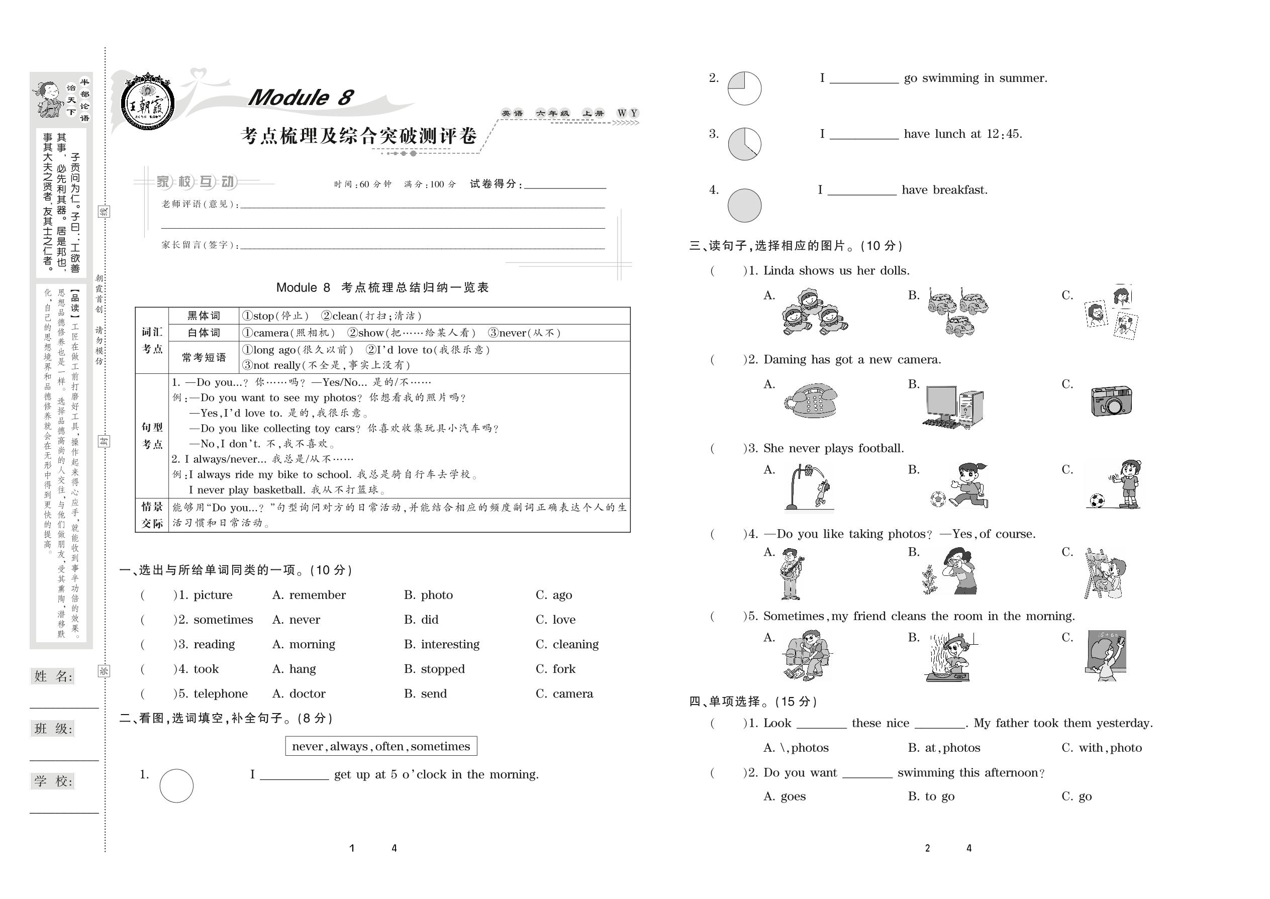 2020上册六年级英语外研版 Module 8 考点梳理及综合突破测评卷