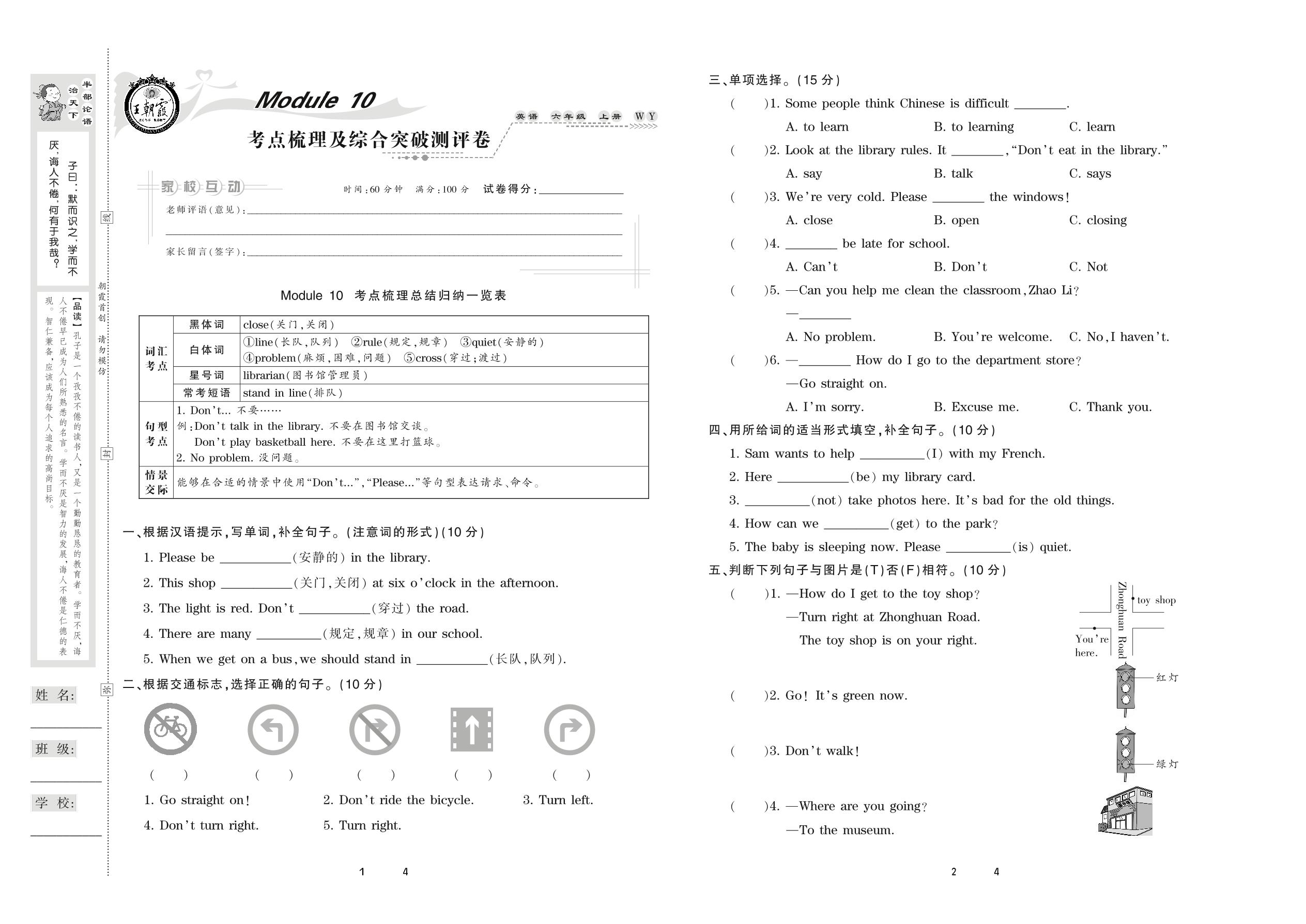 2020上册六年级英语外研版 Module 10 考点梳理及综合突破测评卷