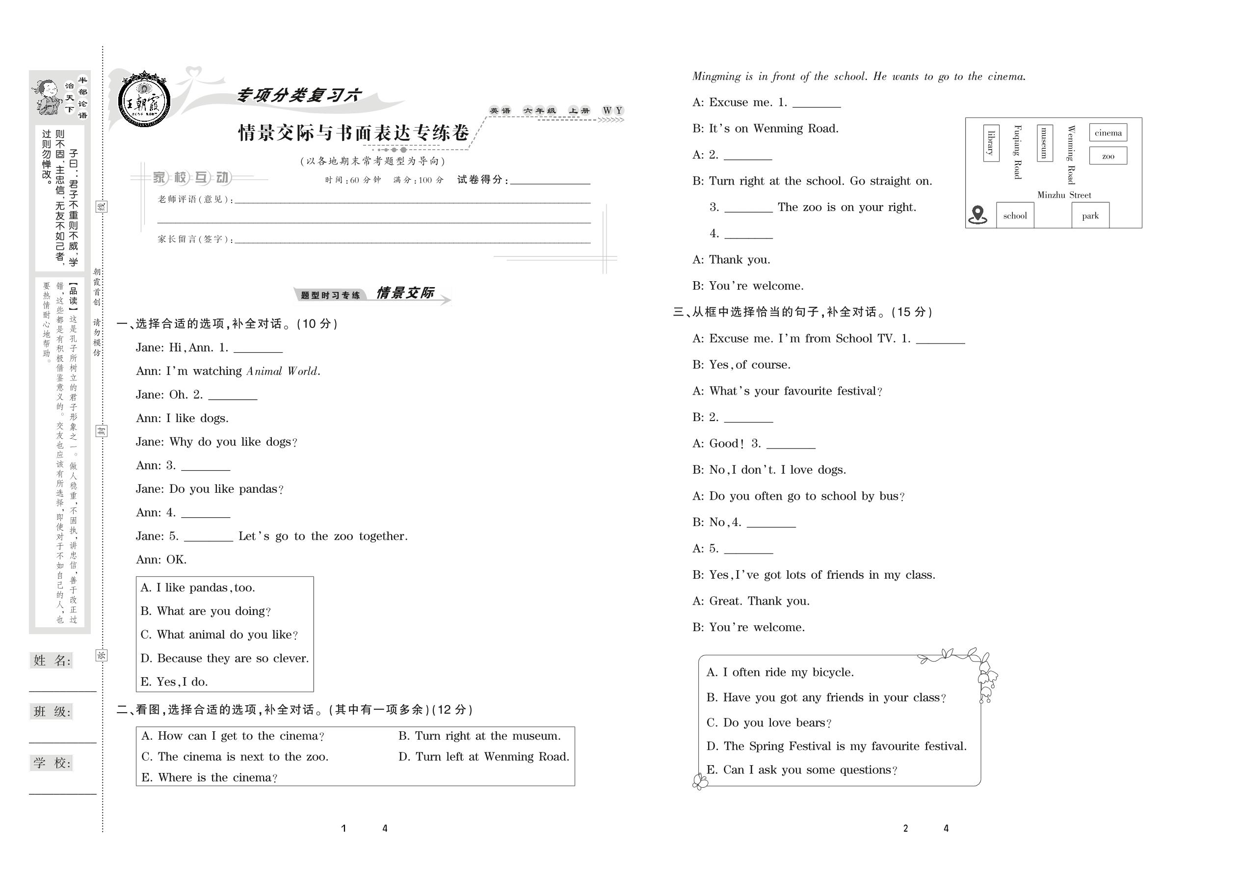 2020上册六年级英语外研版 情景交际与书面表达专练卷
