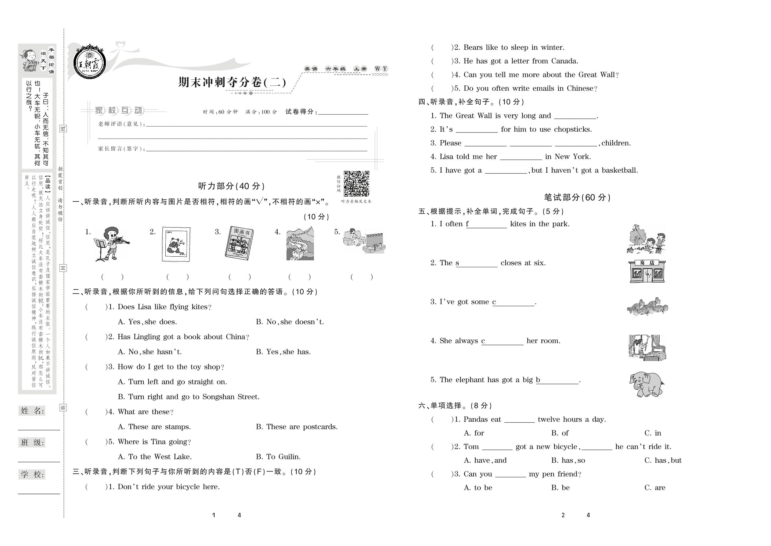 2020上册六年级英语外研版 期末冲刺夺分卷(二)