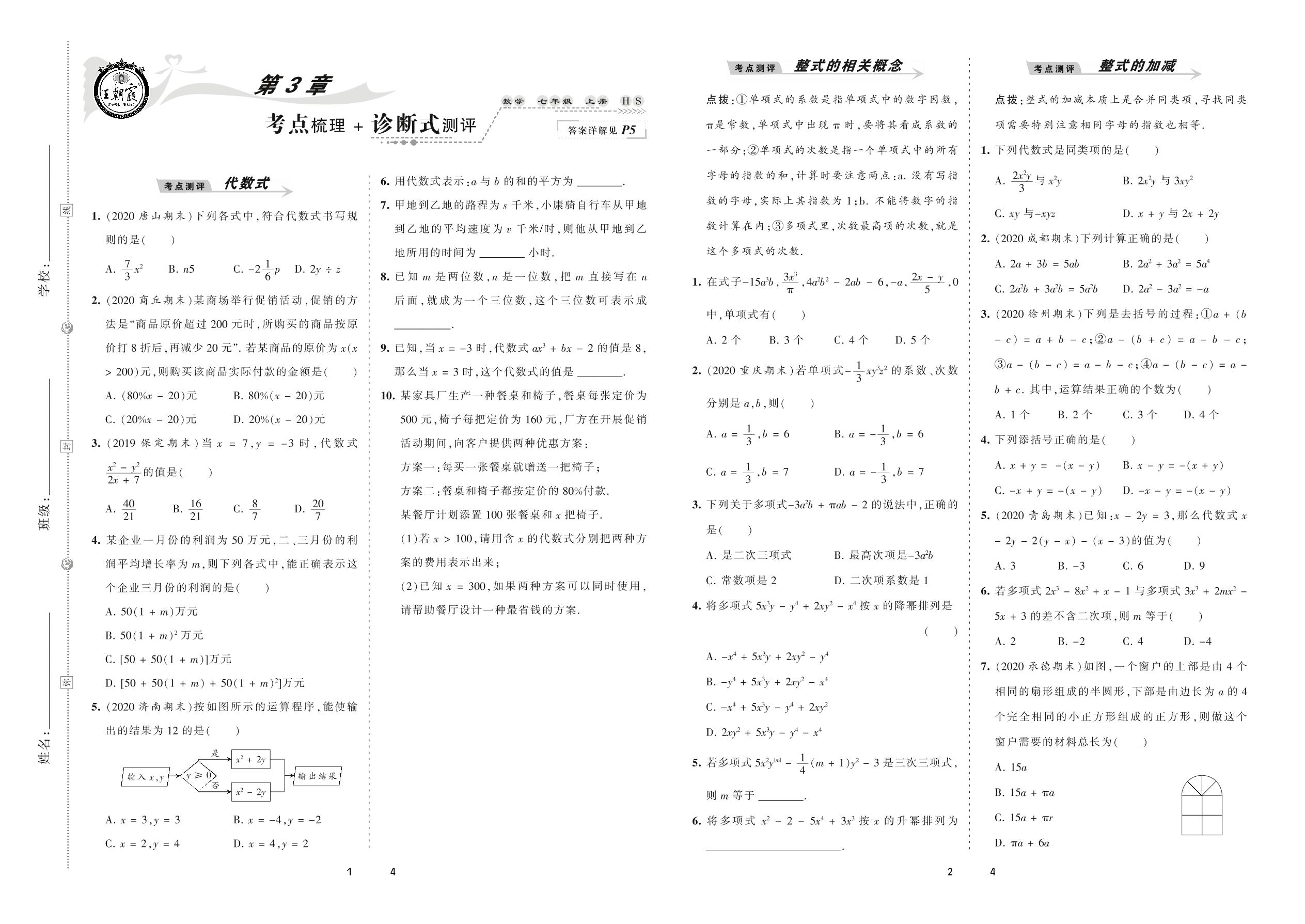 2020上册七年级数学华师版 第3章 考点梳理 + 诊断式测评