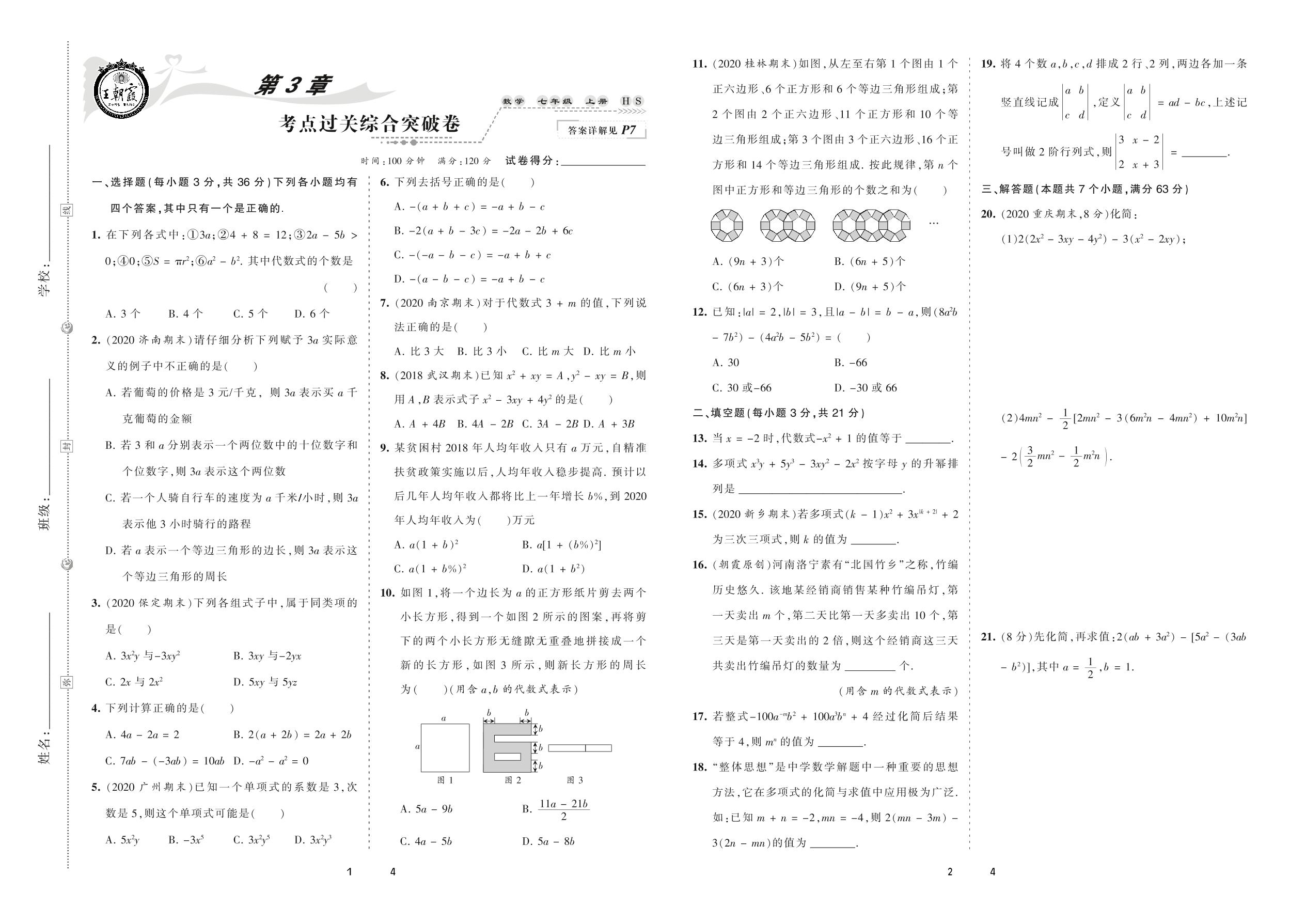 2020上册七年级数学华师版 第3章 考点过关综合突破卷