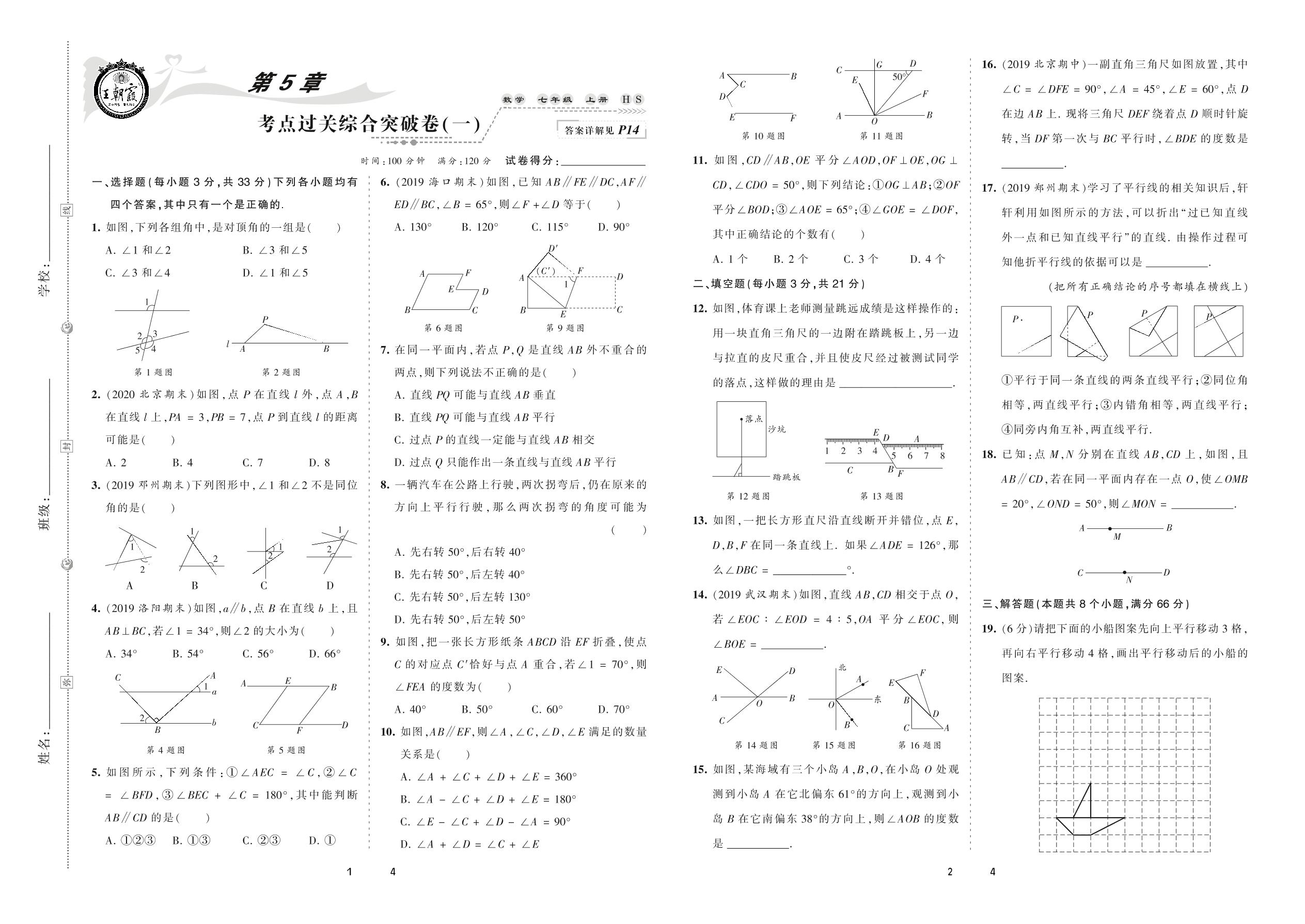2020上册七年级数学华师版 第5章 考点过关综合突破卷(一)