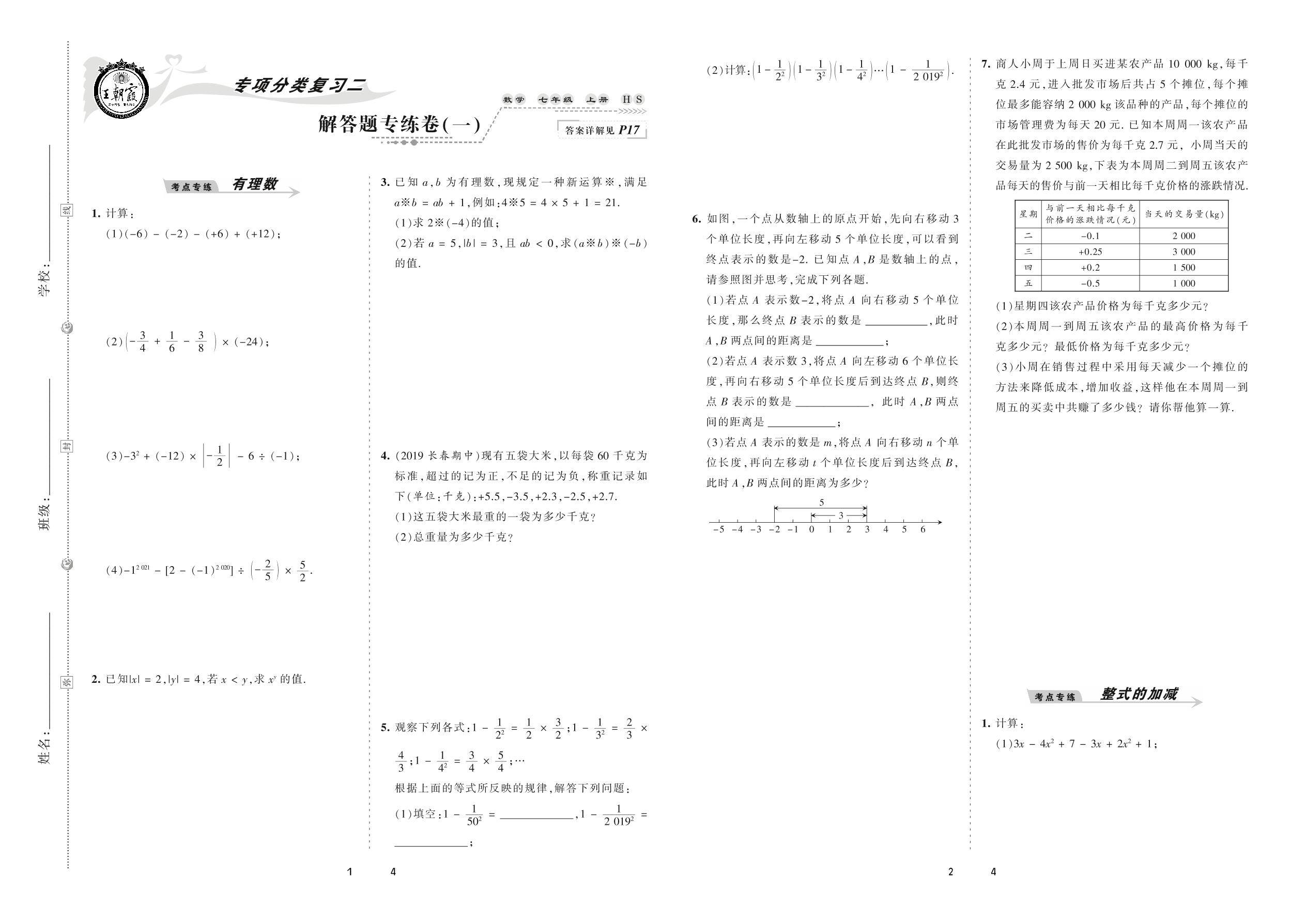 七年级数学华师版上册专项卷