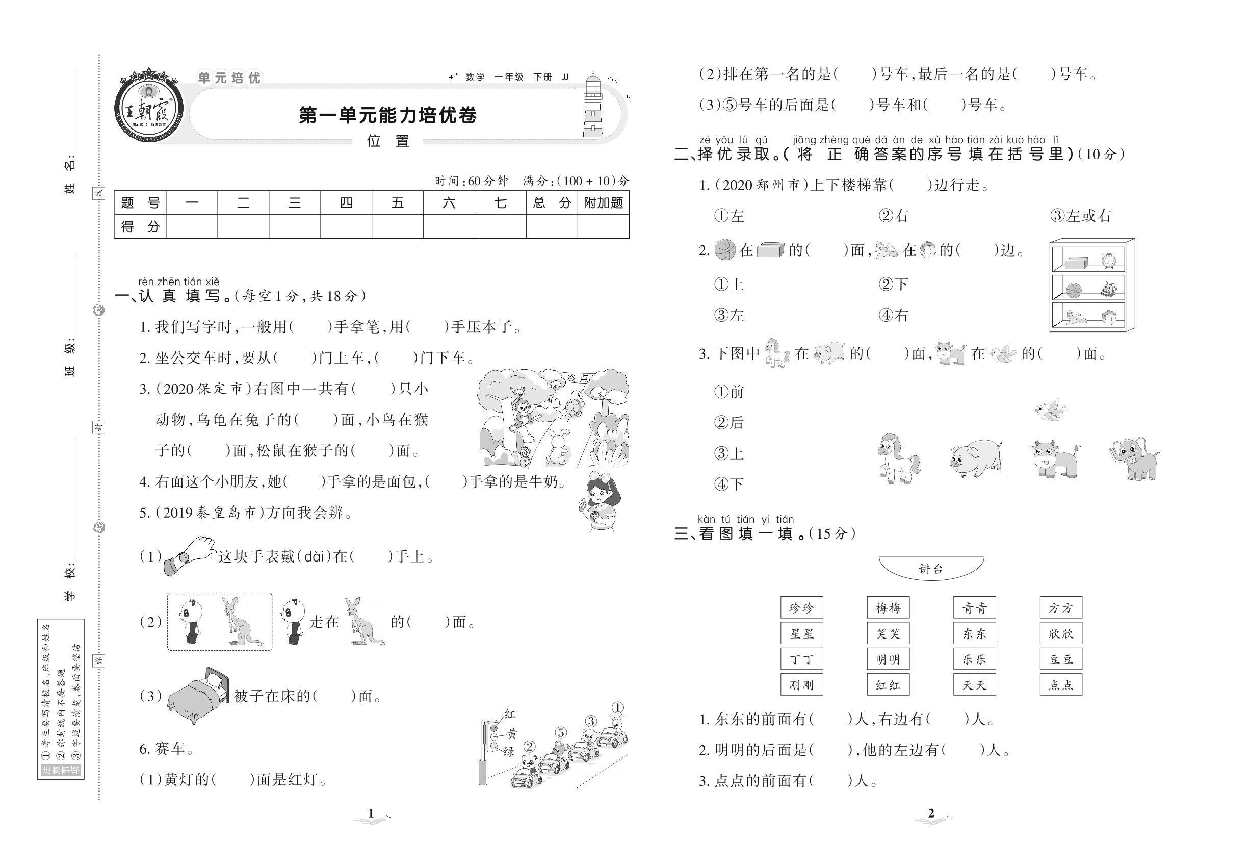 2021下册一年级数学冀教版 第一单元 能力培优卷