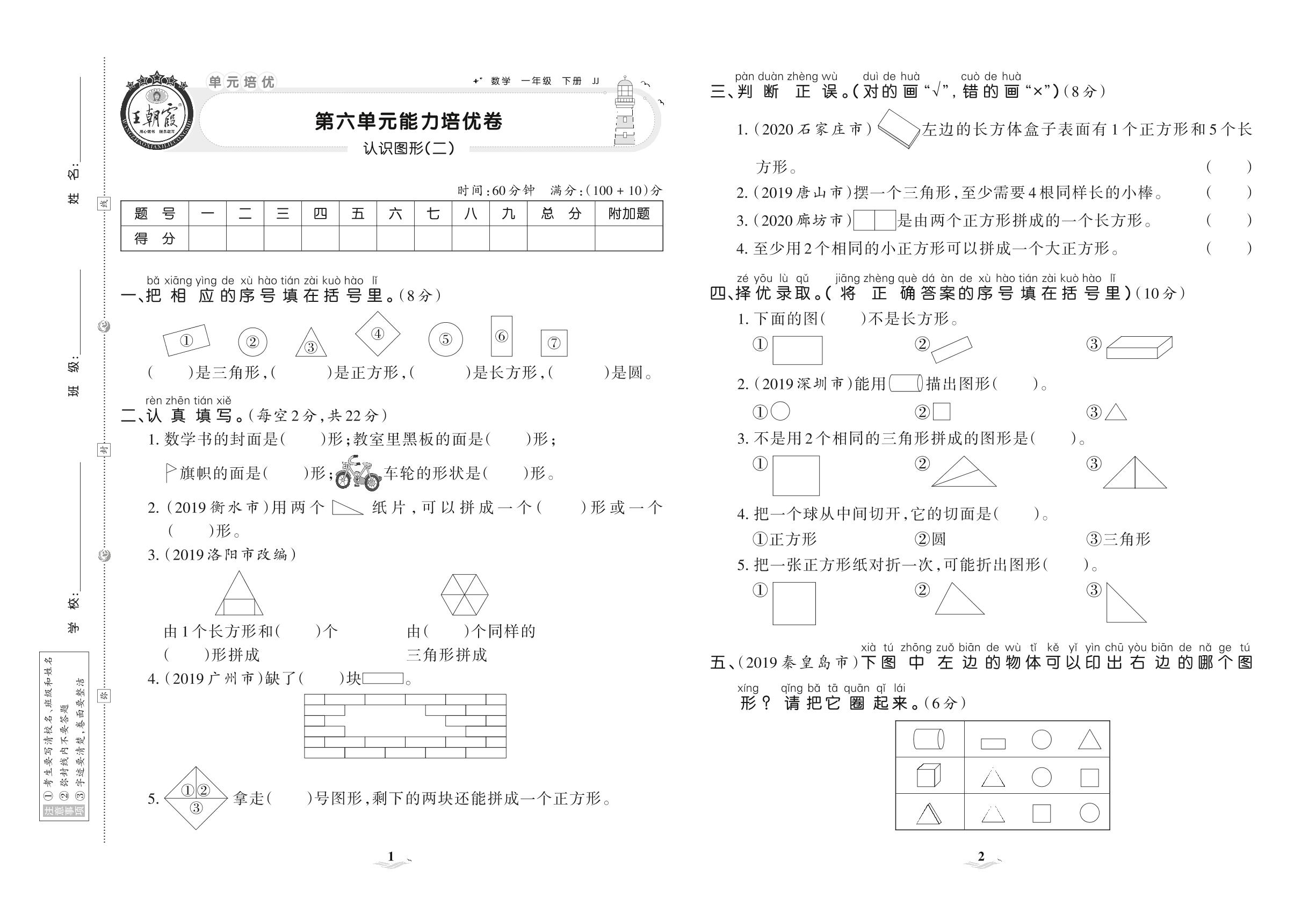 2021下册一年级数学冀教版 第六单元 能力培优卷