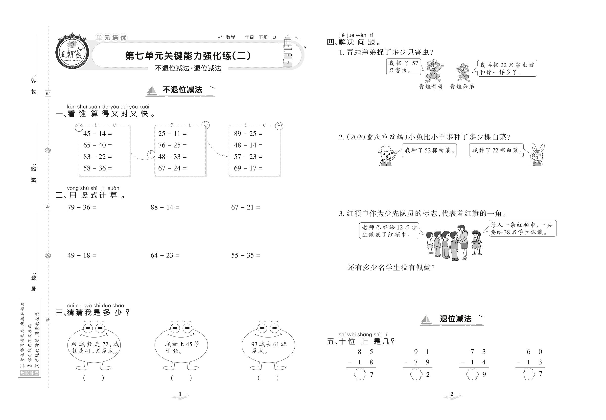2021下册一年级数学冀教版 第七单元 关键能力强化练(二)