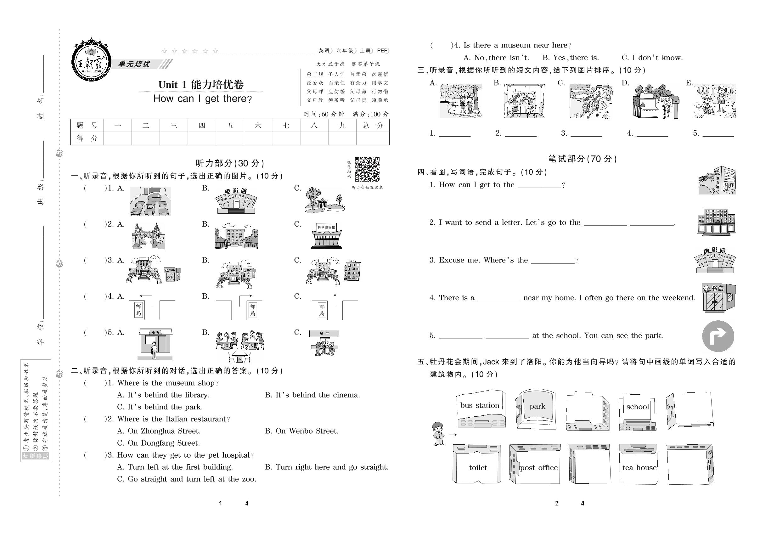 六年级英语人教PEP版(三起始)上册单元卷