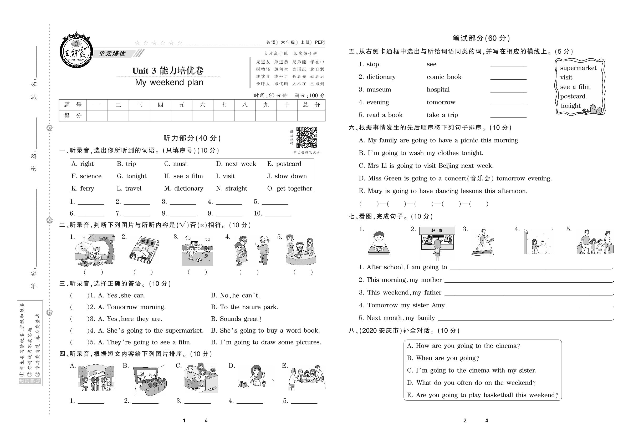 2020上册六年级英语PEP版 Unit 3 能力培优卷