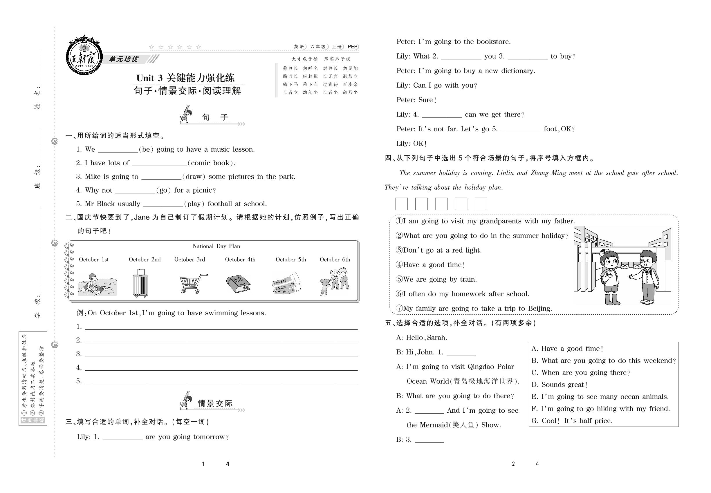 2020上册六年级英语PEP版 Unit 3 关键能力强化练