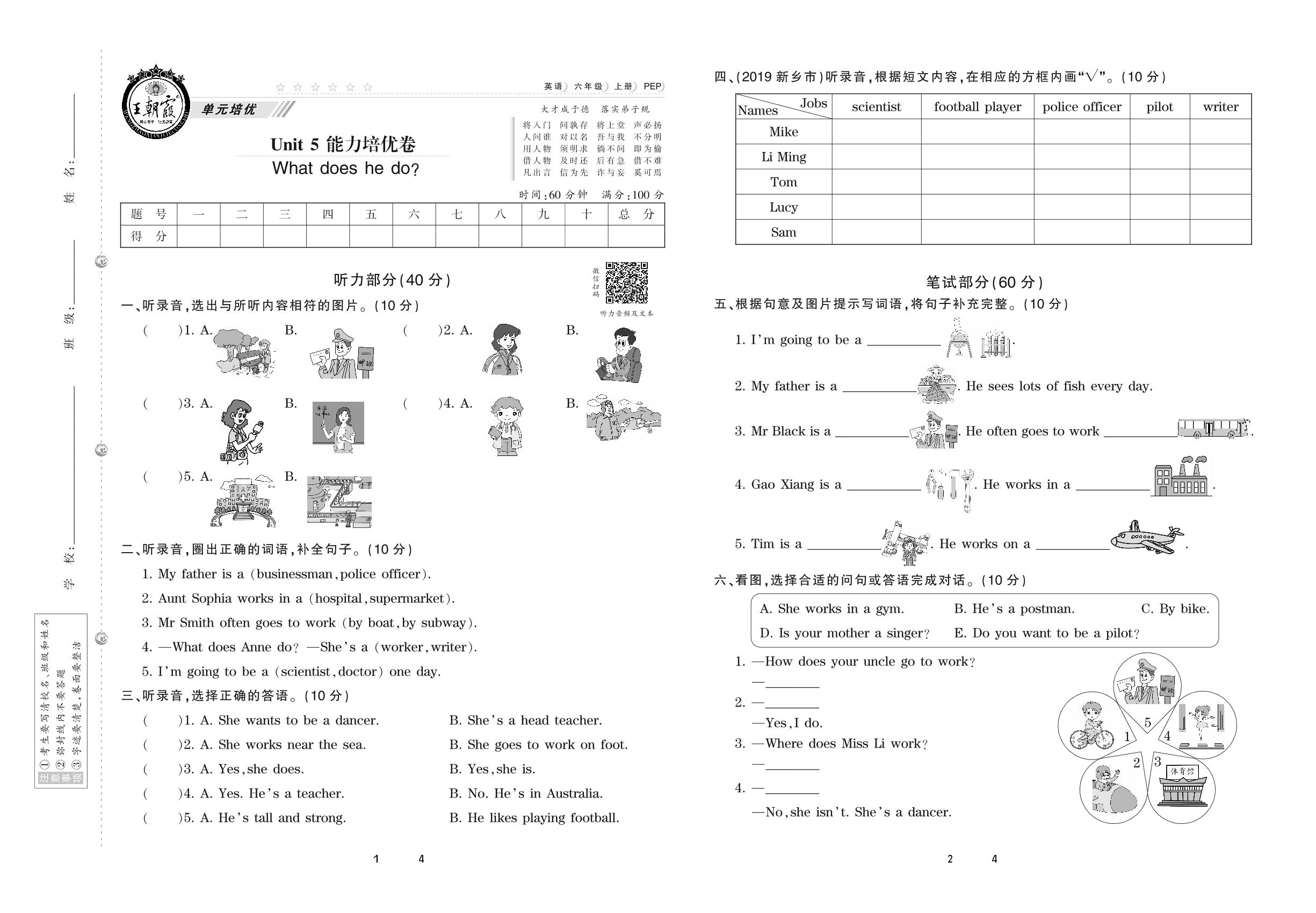 2020上册六年级英语PEP版 Unit 5 能力培优卷