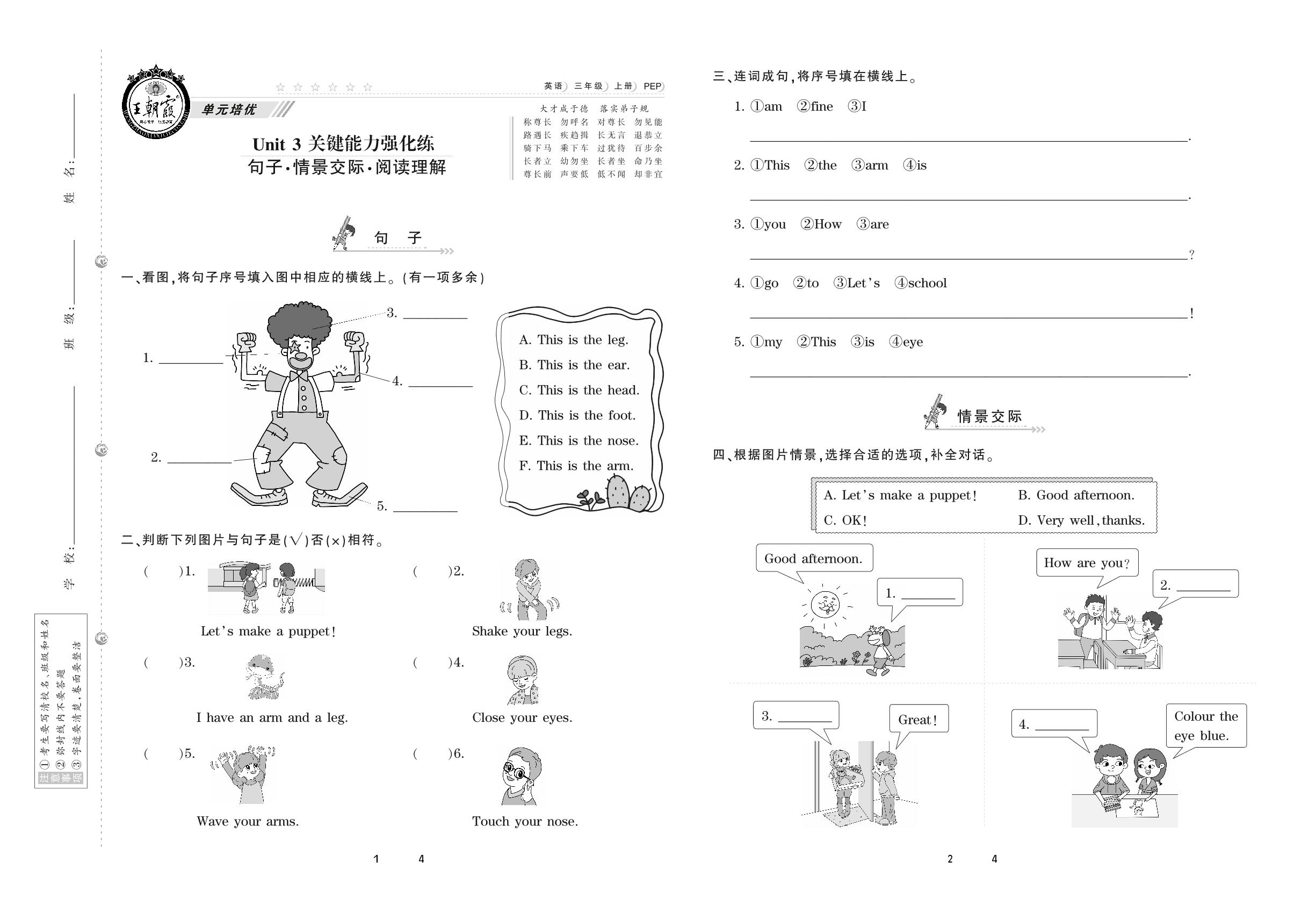 2020上册三年级英语PEP版 Unit 3 关键能力强化练