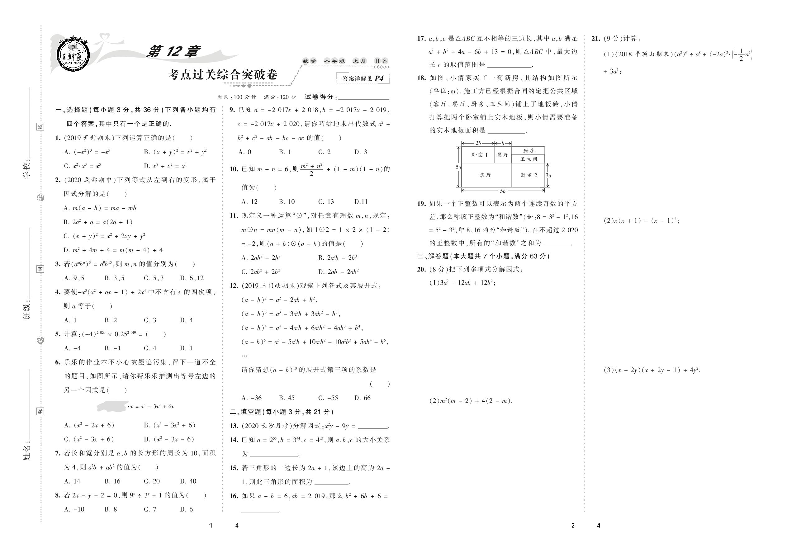 2020上册八年级数学华师版 第12章 考点过关综合突破卷