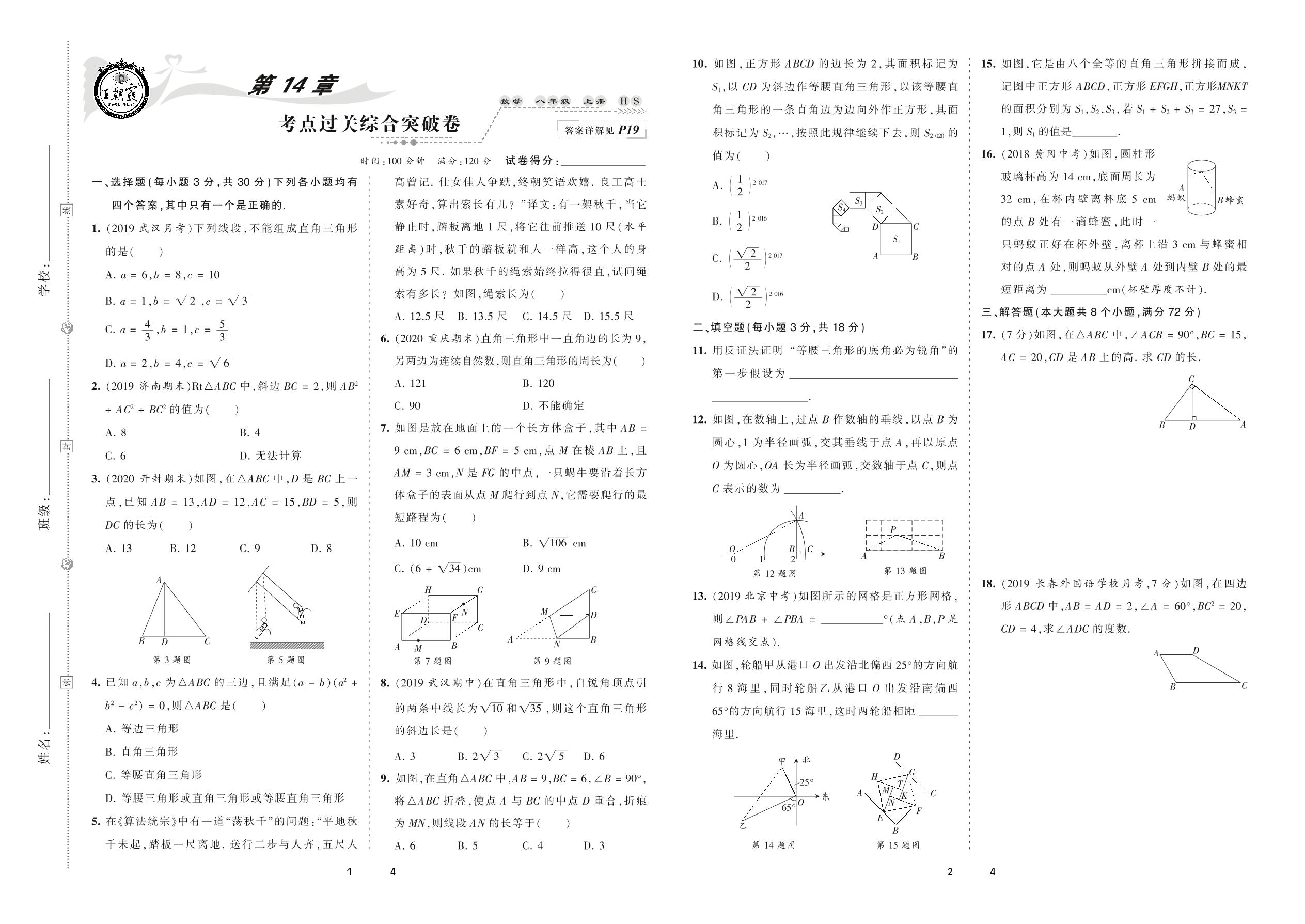 2020上册八年级数学华师版 第14章 考点过关综合突破卷