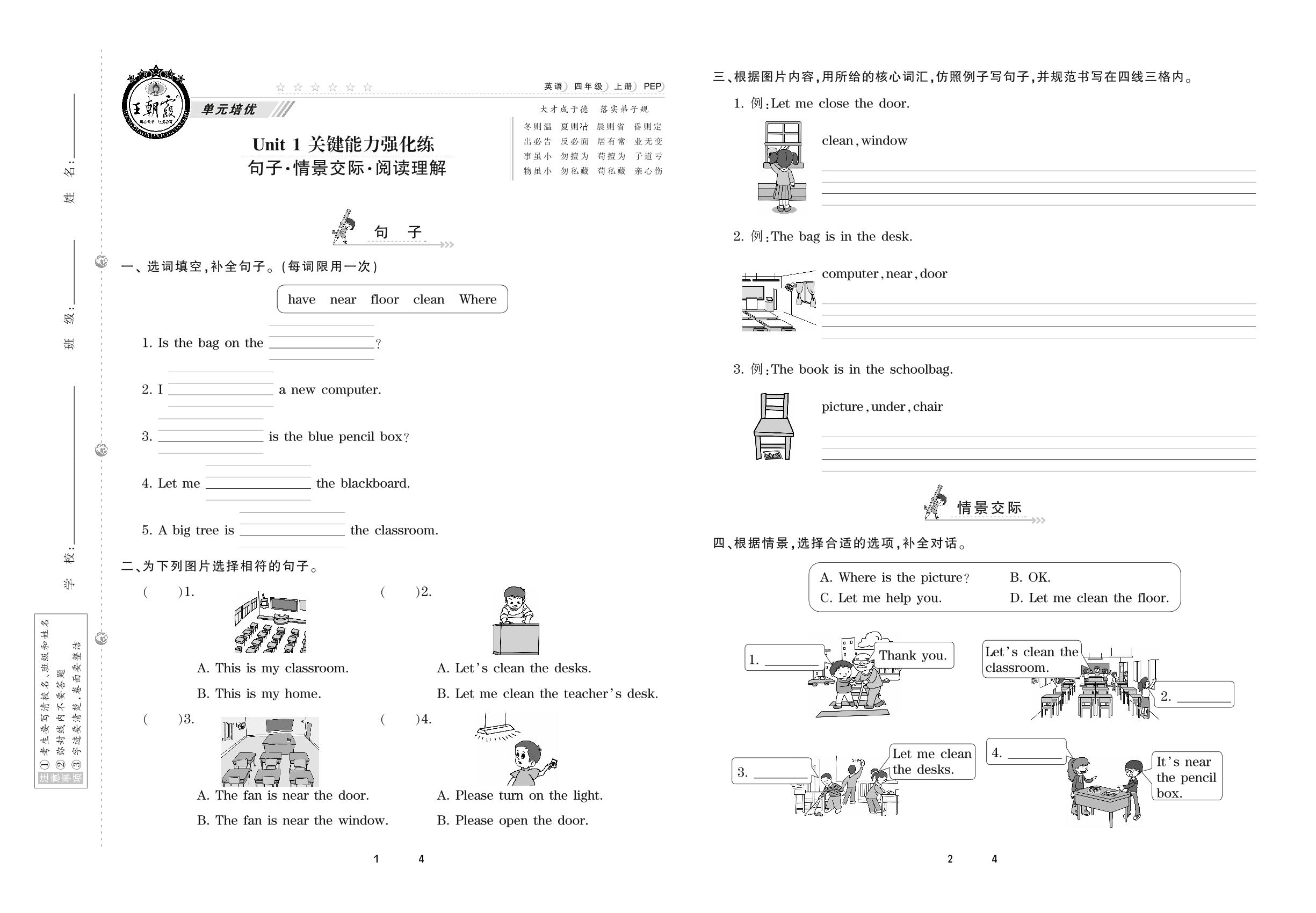 2020上册四年级英语PEP版 Unit 1 关键能力强化练