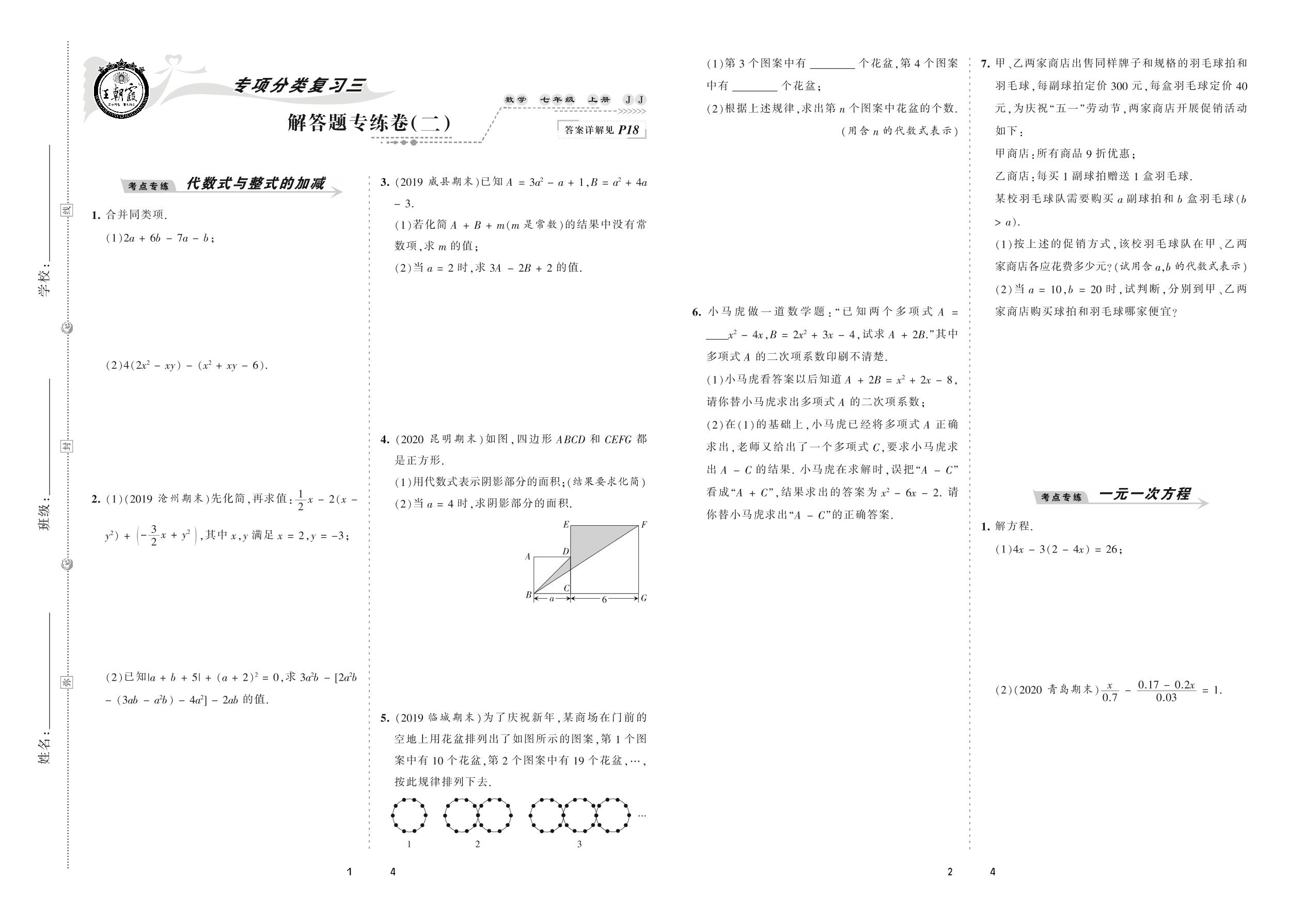 2020上册七年级数学冀教版 解答题专练卷(二)