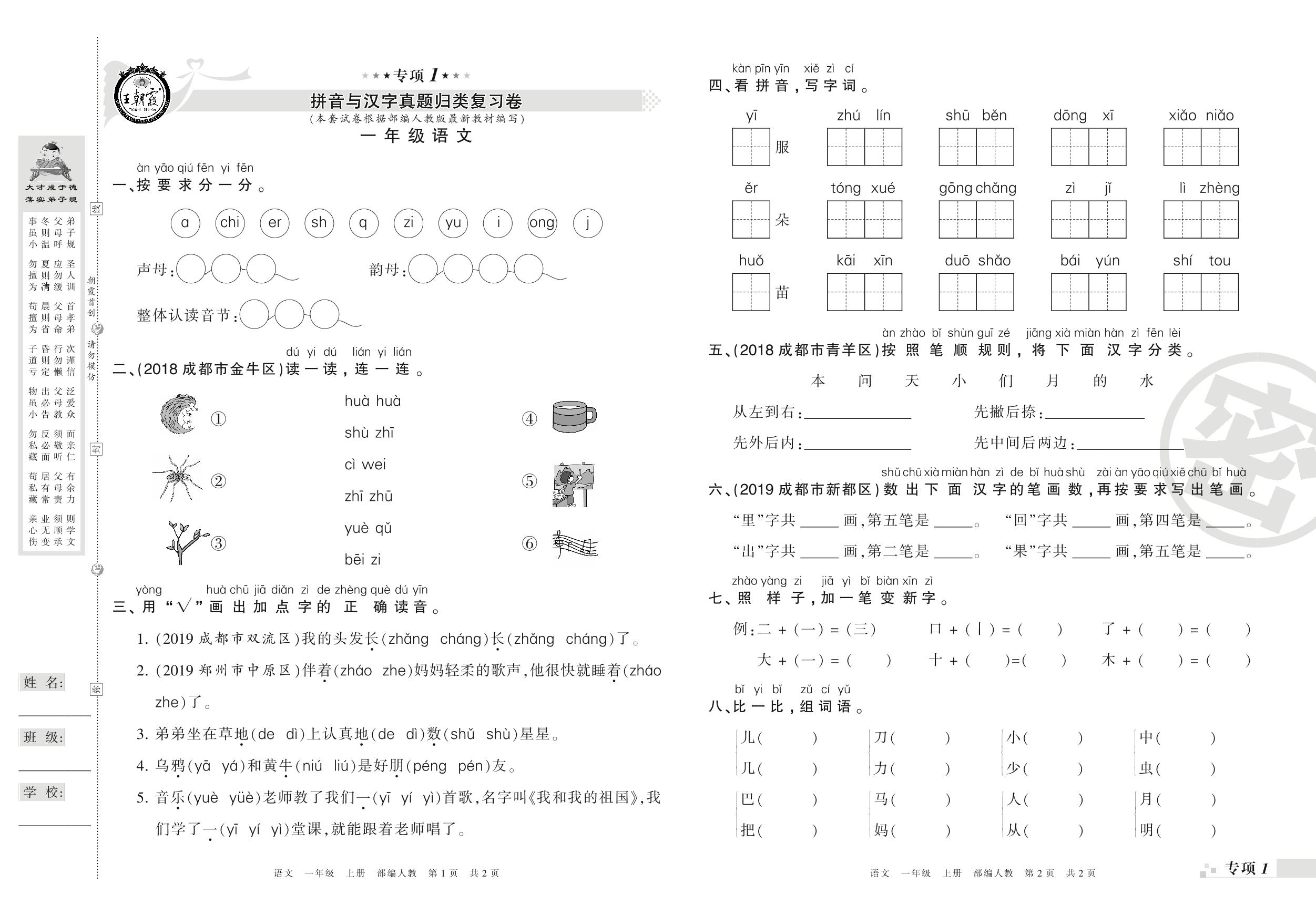 王朝霞期末专项卷——拼音与汉字、词语与句子真题归类复习卷一年级上册语文(人教版)_R210731180858【0】