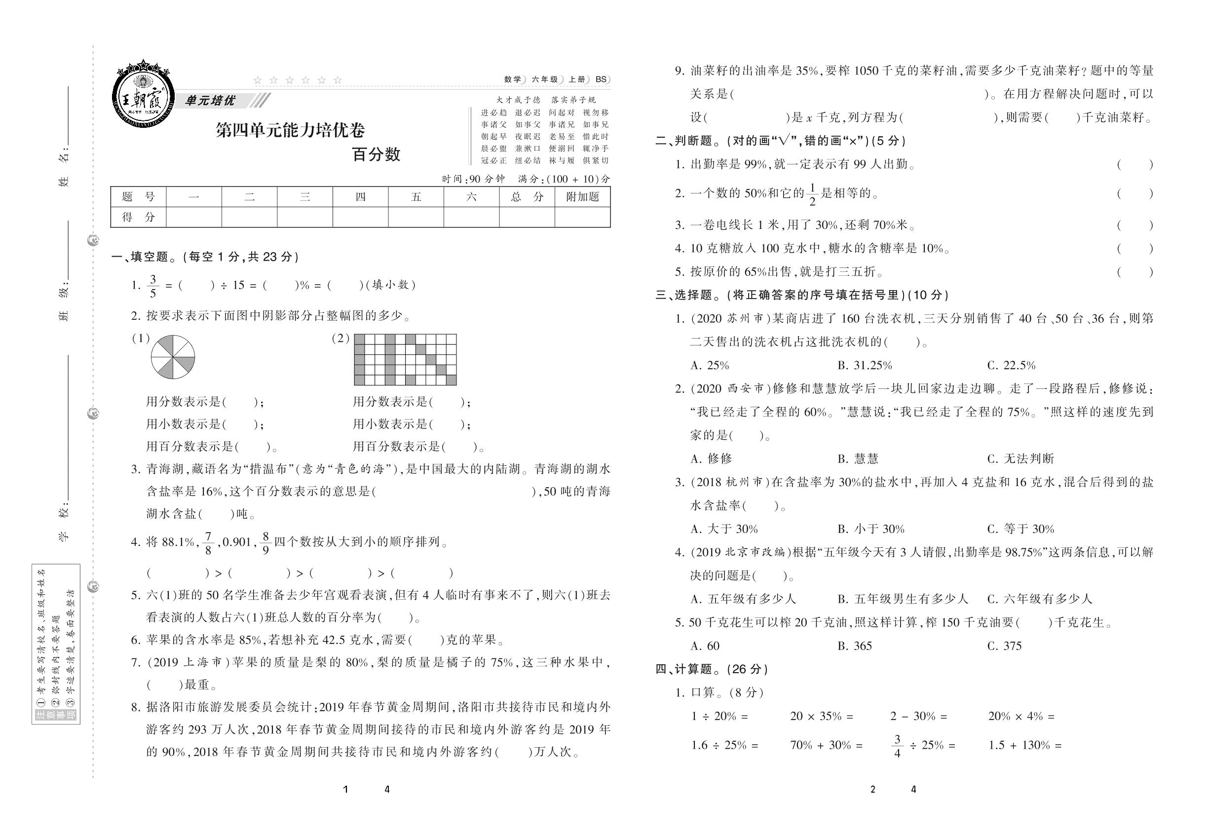 2020上册六年级数学北师版 第四单元 能力培优卷