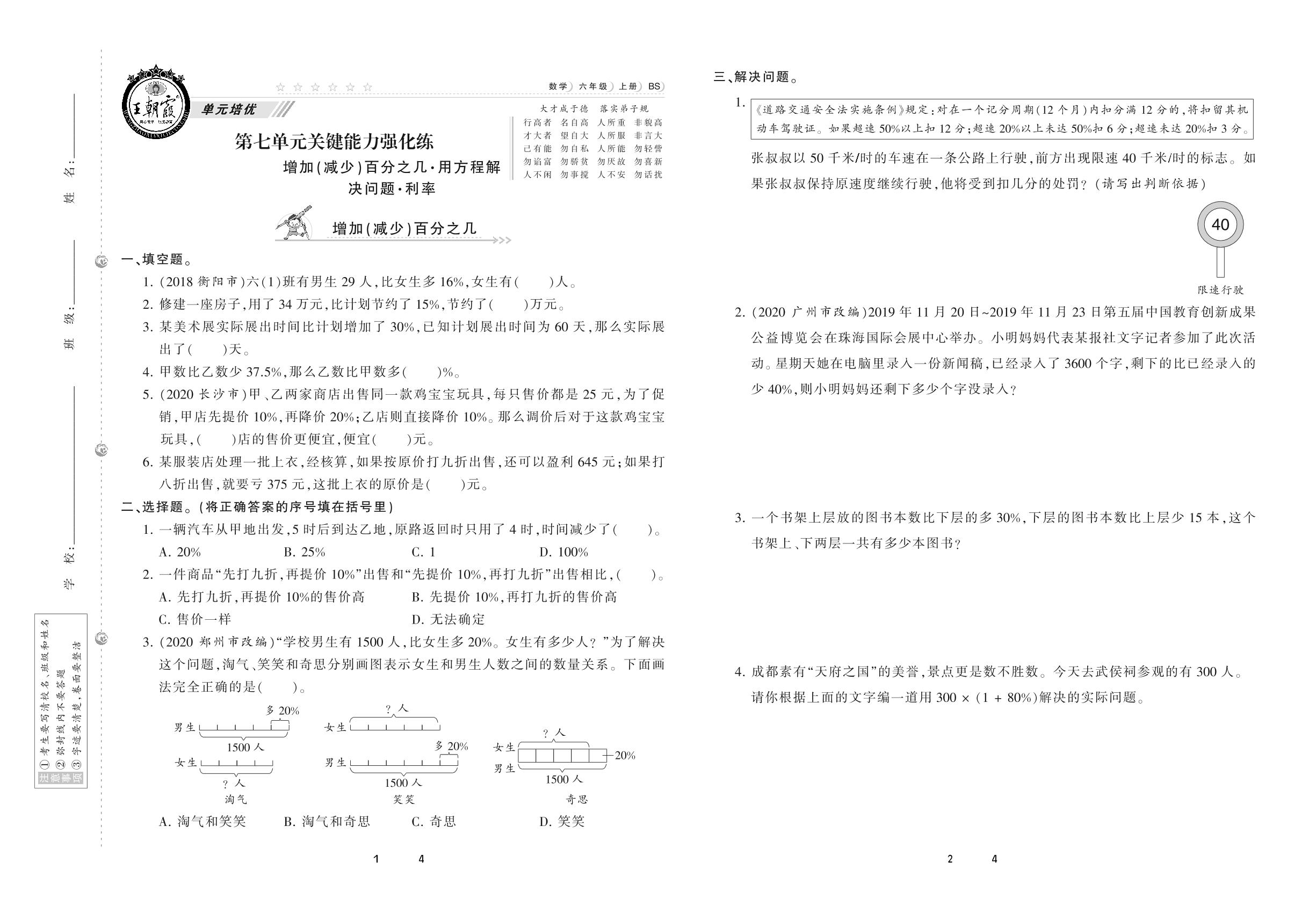 2020上册六年级数学北师版 第七单元 关键能力强化练