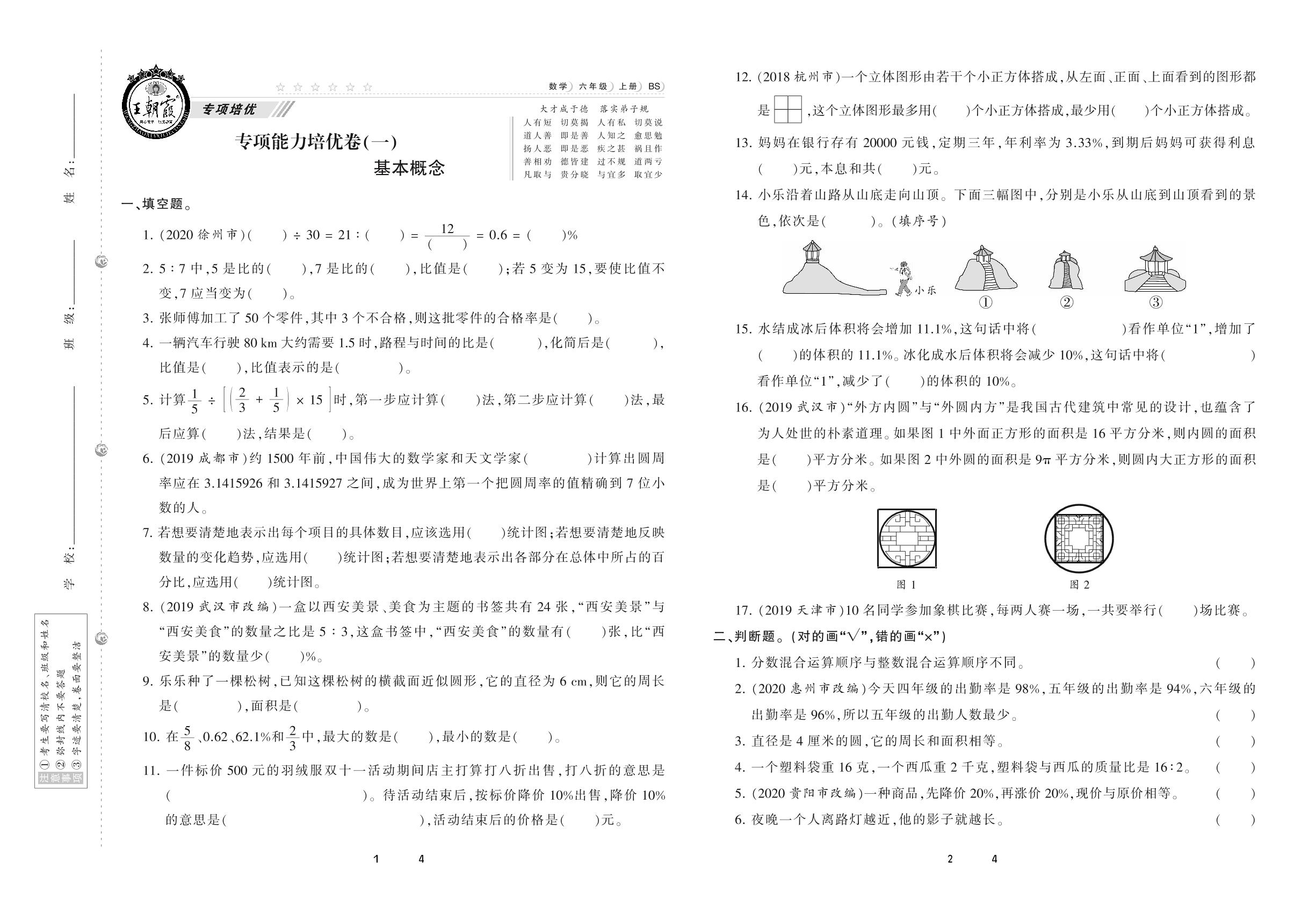 2020上册六年级数学北师版 专项能力培优卷(一) 基本概念