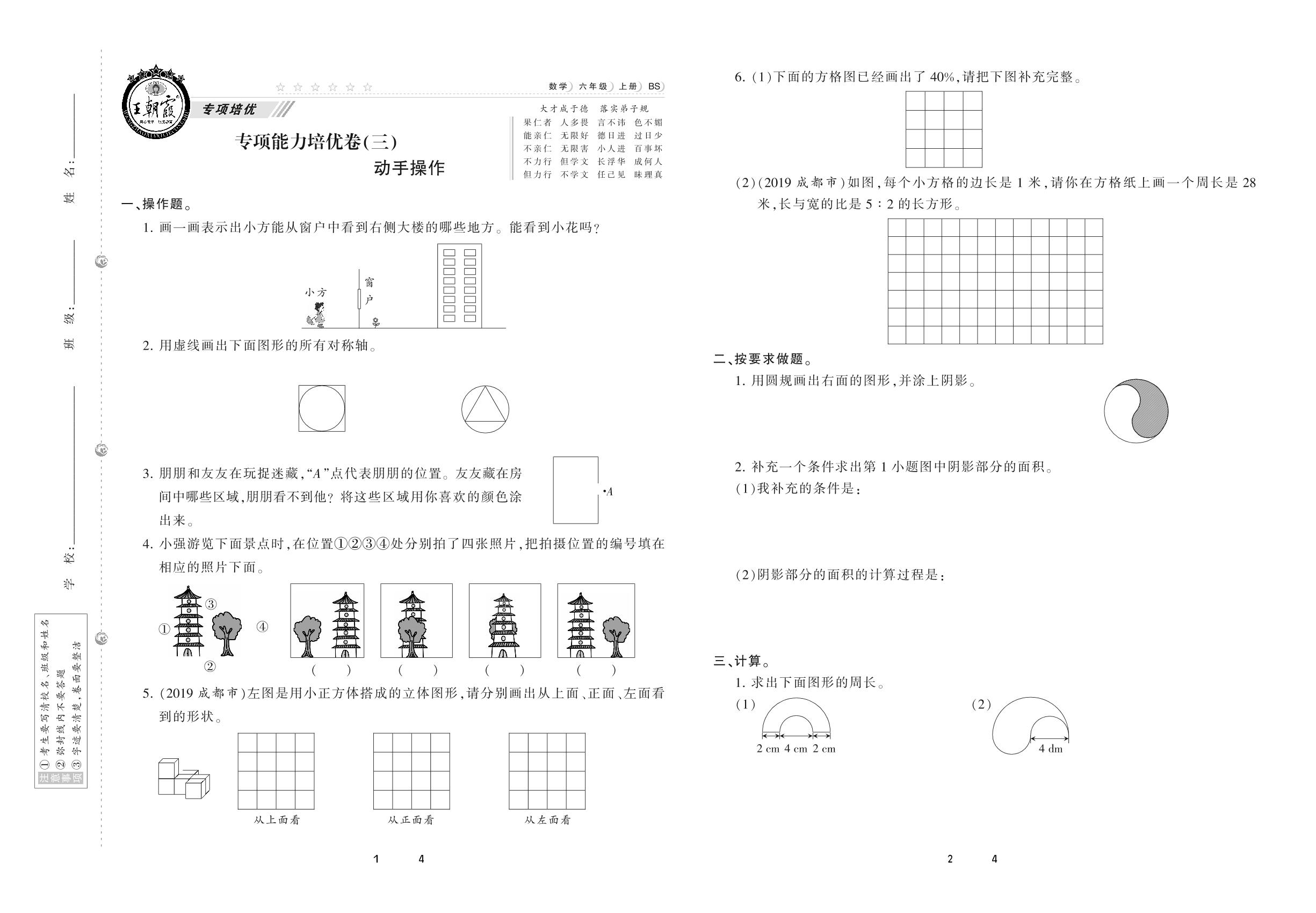 2020上册六年级数学北师版 专项能力培优卷(三) 动手操作